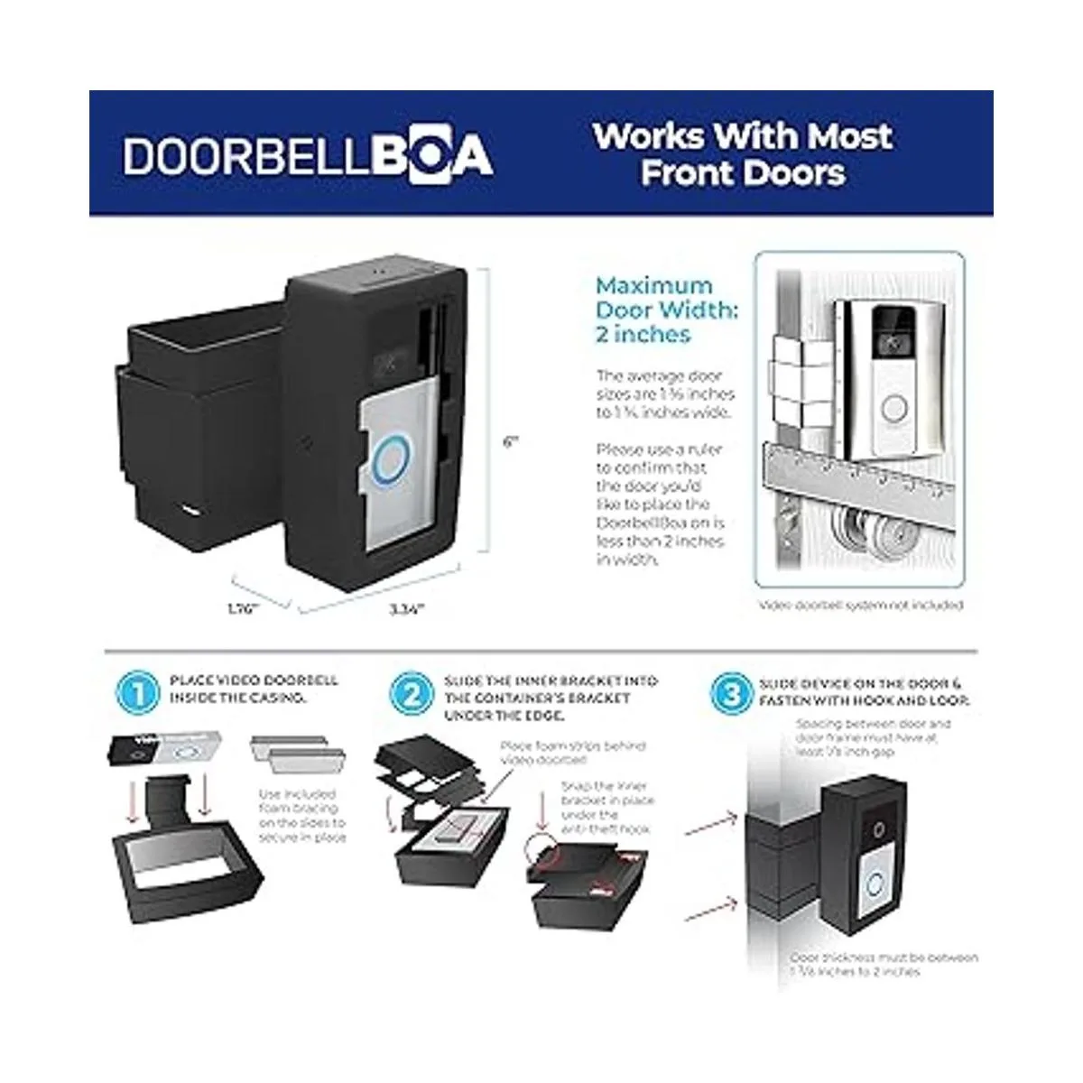 Envuelve tu timbre de vídeo: DoorBellBoa envuelve tu timbre de video de forma segura, por lo que es perfecto para situaciones en las que no puedes instalar un timbre de video debido a daños a la propiedad.