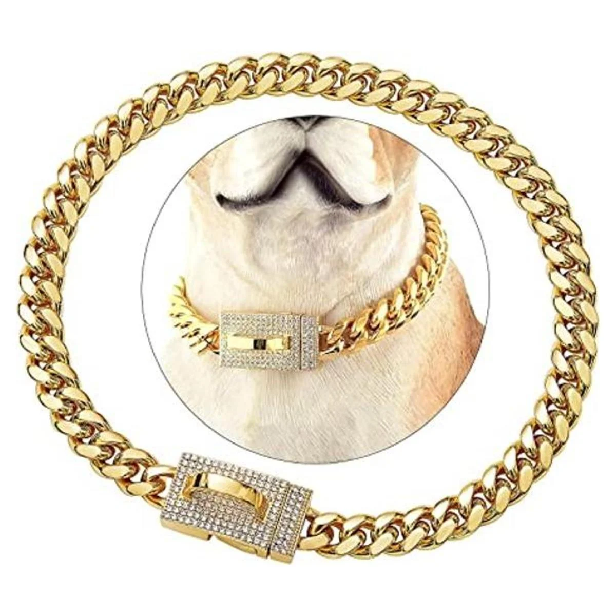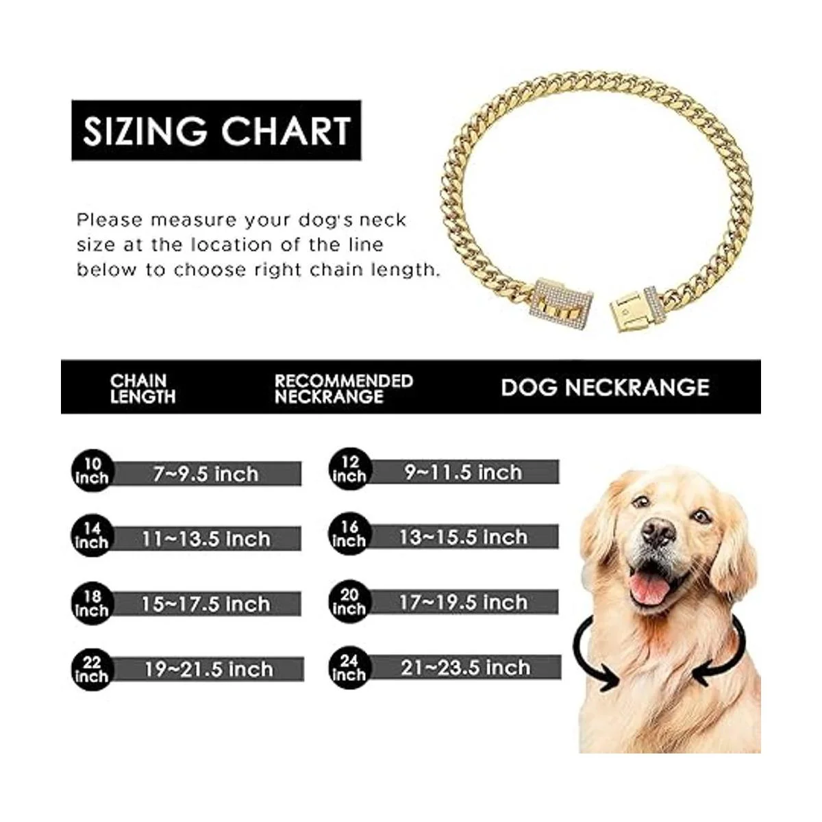 Dopetie Collar de perro con cadena de oro con circonitas brillantes, eslabones cubanos de metal para perros medianos y grandes, resistente a los masticables, 16.0 in