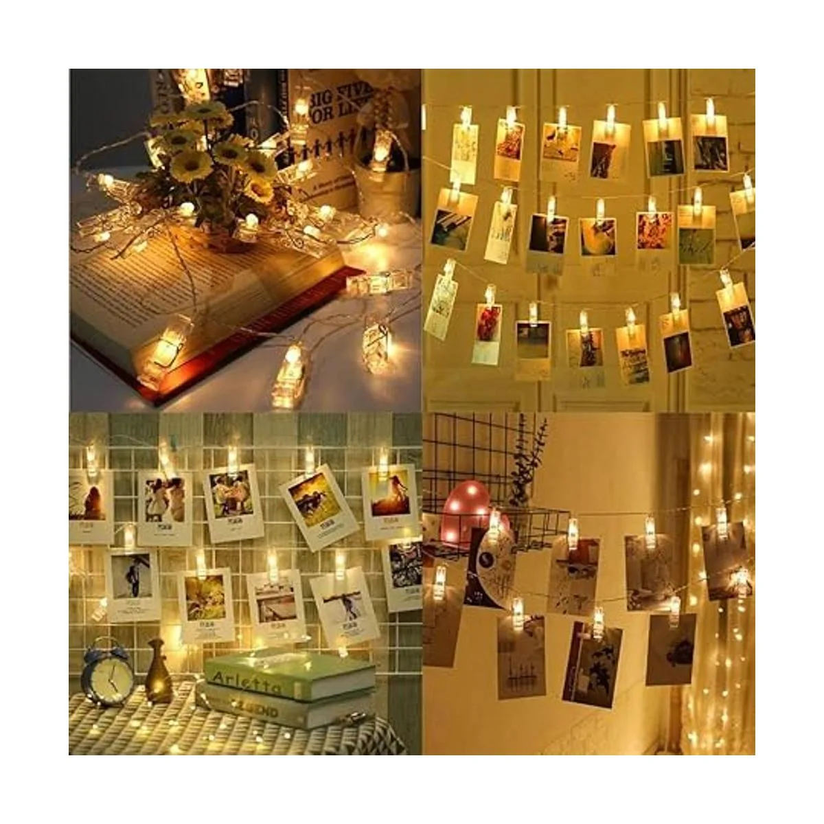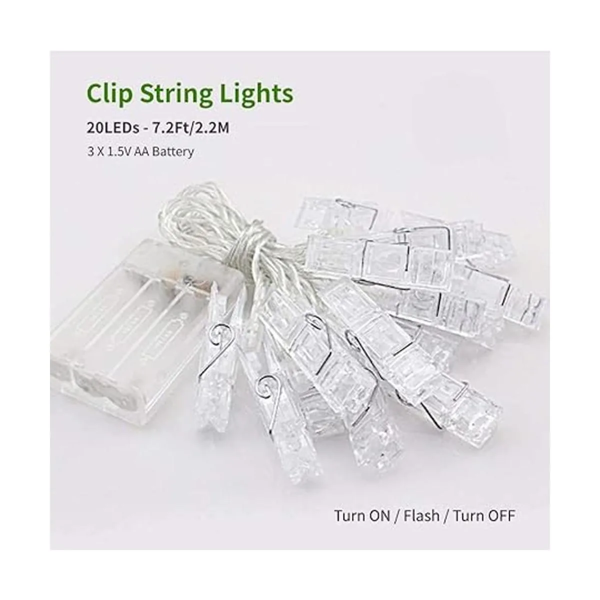 Tres tamaños disponibles: 20 y 30 y 40 clips de fotos transparentes LED disponibles. La longitud total de la cadena de luz es de 7.2 ft y 10.5 ft y 13.8 ft. Te permite ajustar libremente cualquier tamaño en la cadena de luces LED para la imagen.