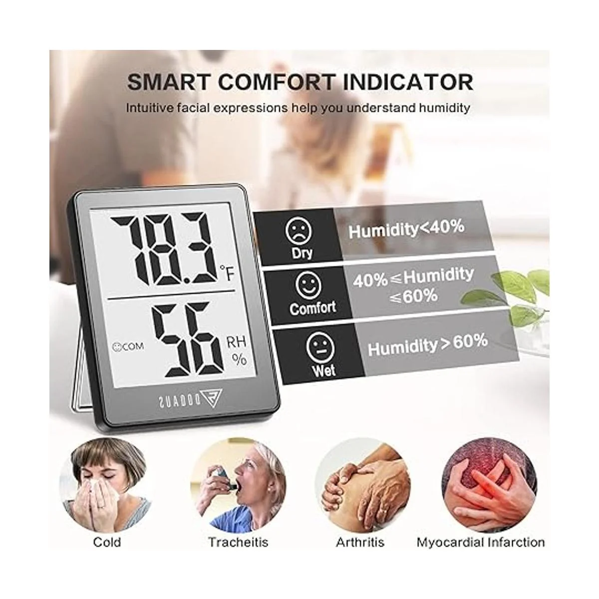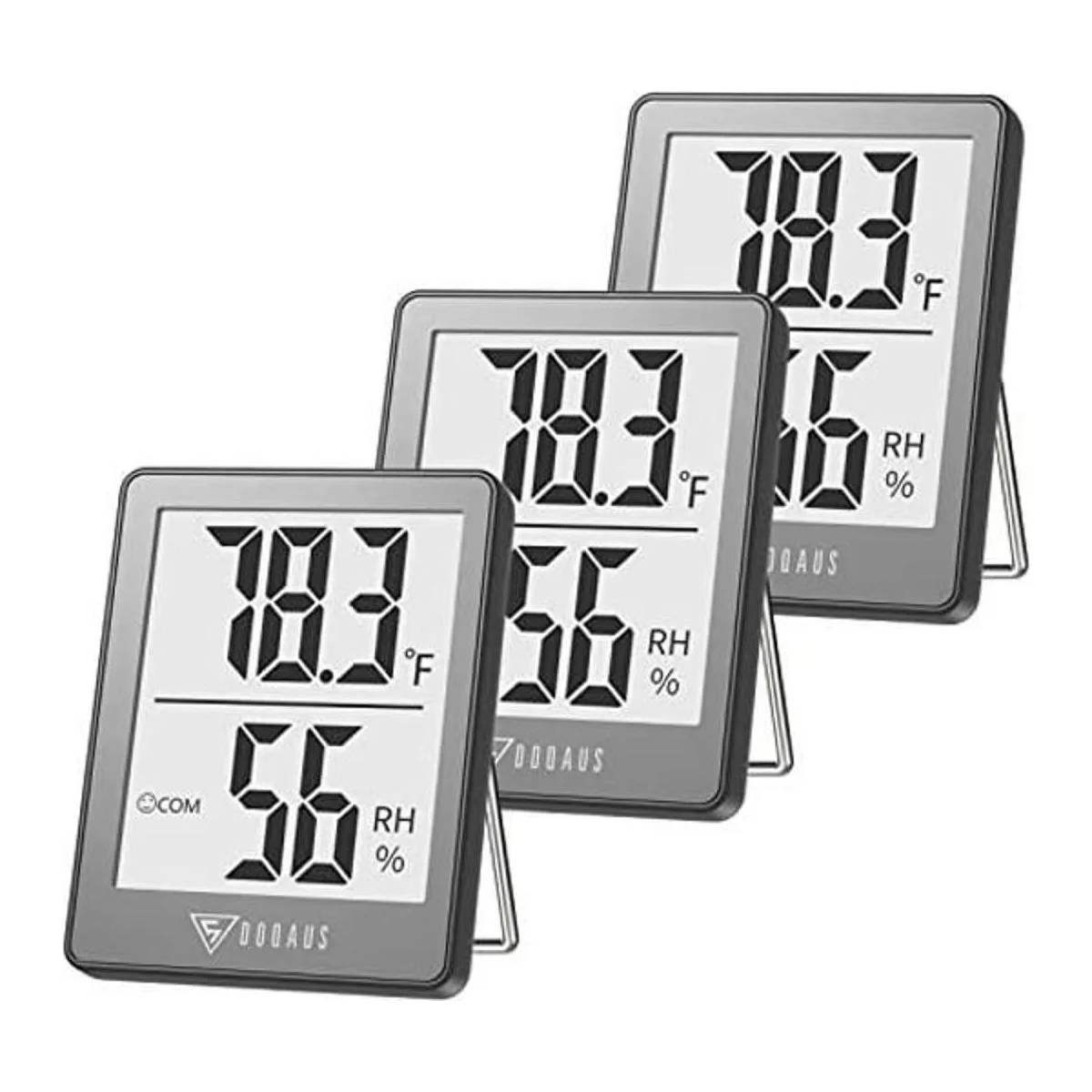 DOQAUS Termómetro de interior 3 paquetes, mini termómetro digital de habitación, medidores de humedad, indicador preciso de temperatura de humedad para casa, oficina, invernadero, hogar gris 2.3 x 1.8 pulgadas