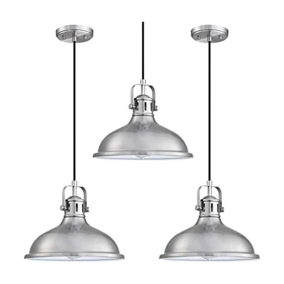 Doraimi Lighting Paquete de 3 luces colgantes de 12 pulgadas, lámparas industriales vintage, lámparas de araña de metal con acabado de níquel cepillado, lámpara de techo para cocina, hogar, isla comedor, dormitorio, casa de campo