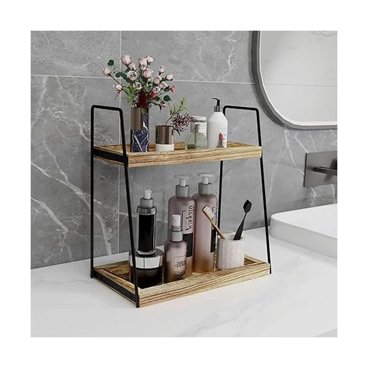 Dorhors Organizador de encimera de baño de 2 niveles, organizador de tocador para encimera de baño, estante de pie de madera para baño, tocador, cocina