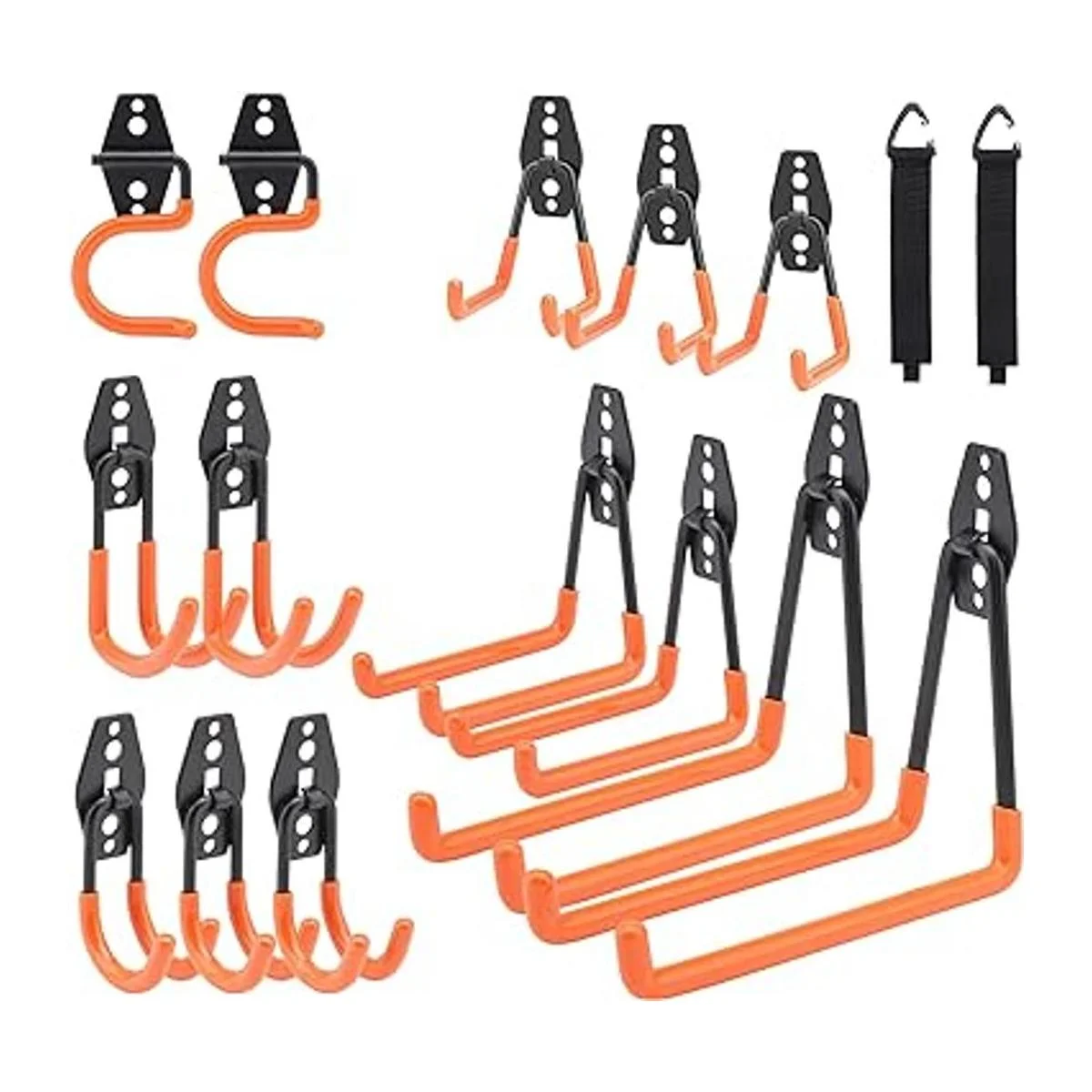 Dorisy Paquete de 16 ganchos de garaje mejorados, doble resistente, con soportes para escobas, ganchos de montaje en pared, organización de almacenamiento de garaje y ganchos de herramientas para herramientas eléctricas y de jardín, escaleras, bicicletas naranja