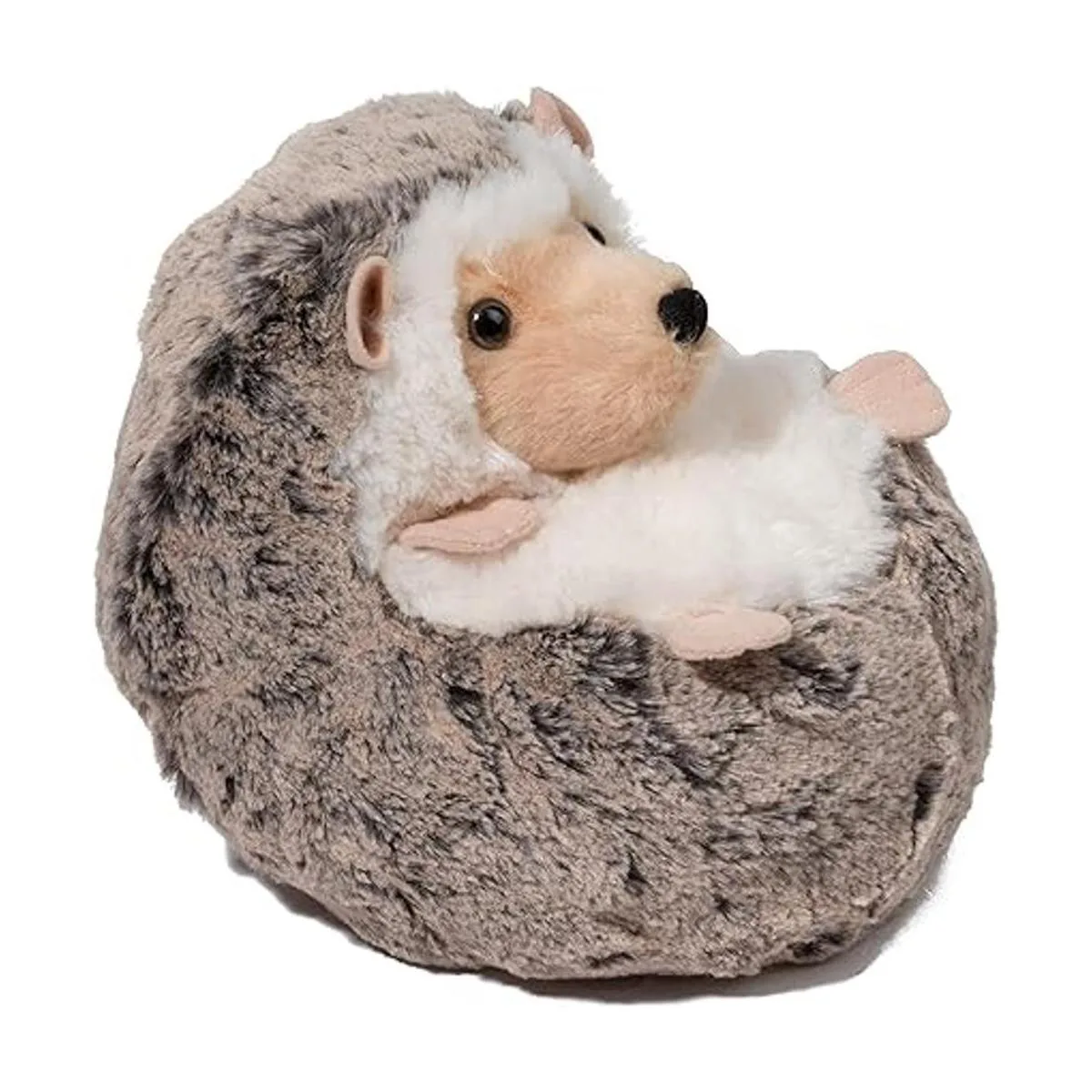 Una expresión de ojos brillantes y pequeñas orejas y patas añaden encanto a este peluche de erizo y lo convierten en una bola de diversión.