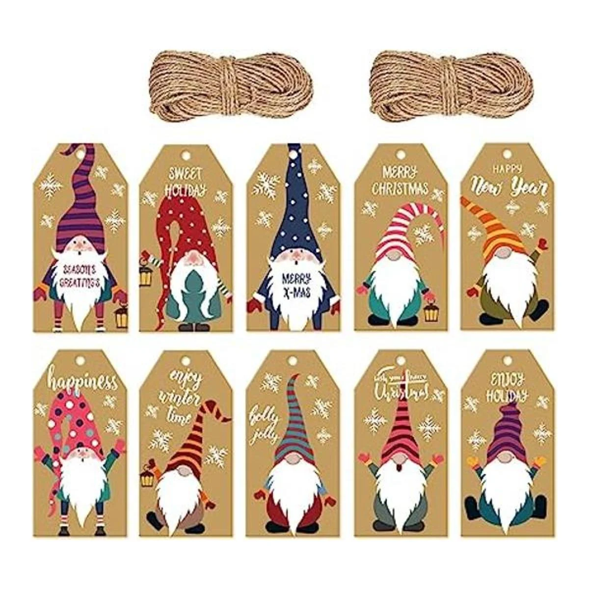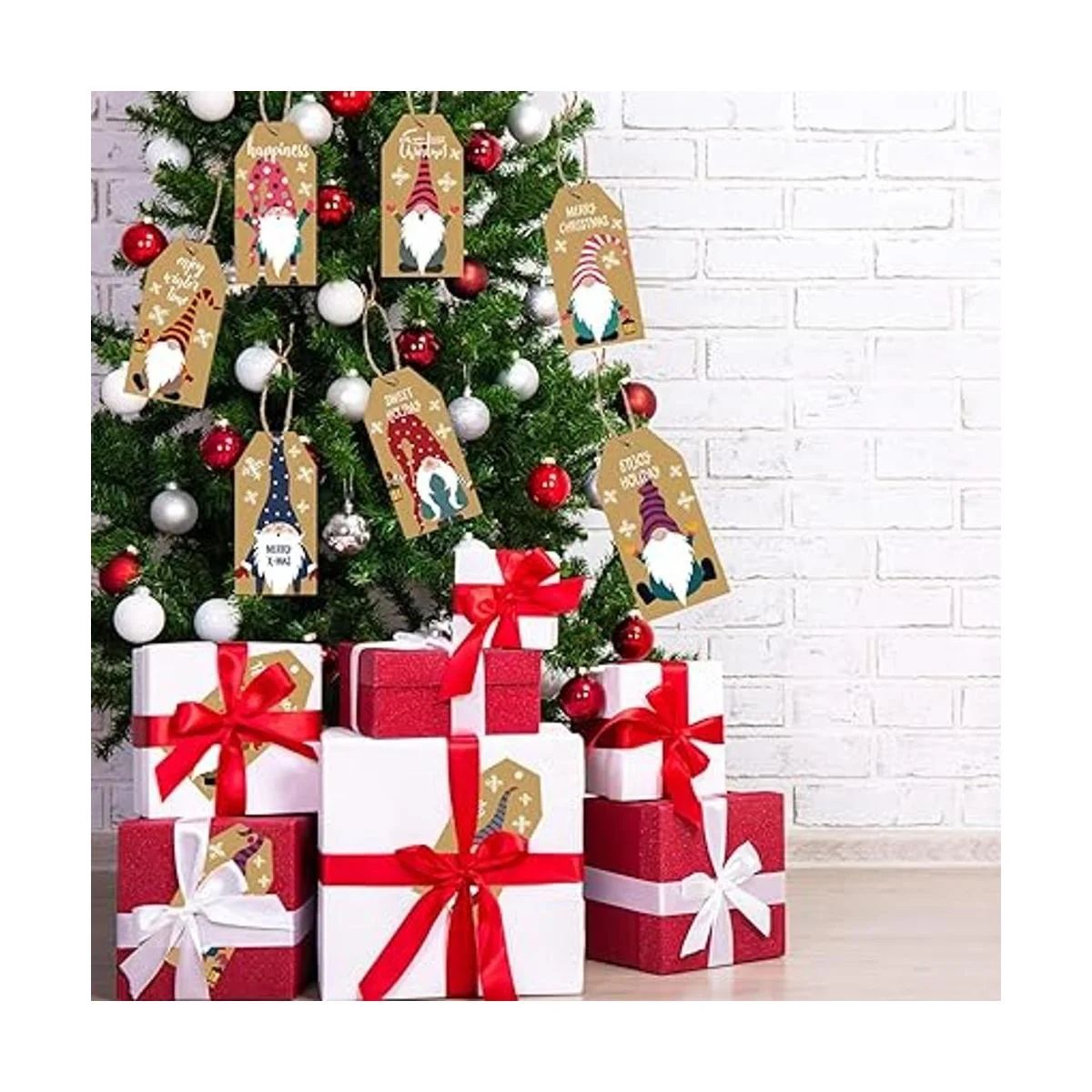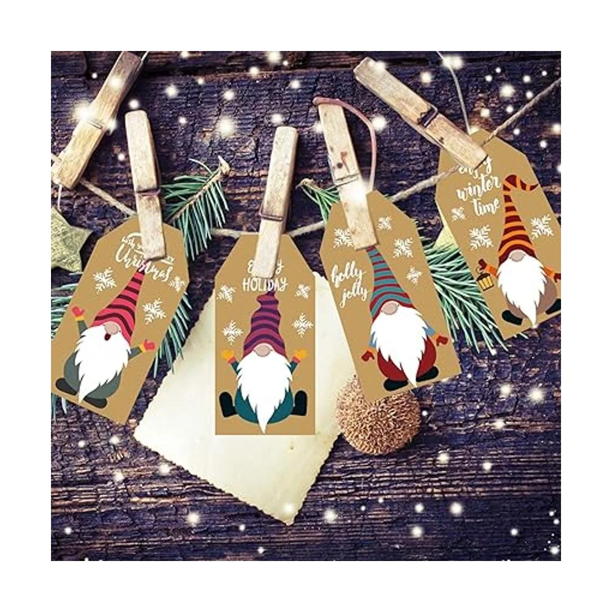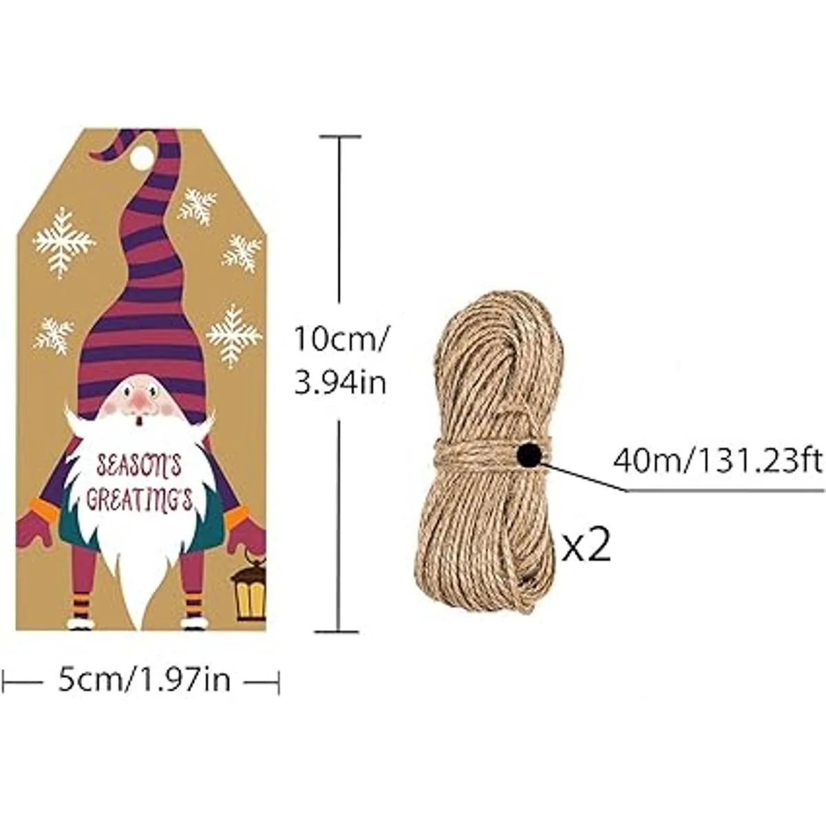 Doumeny 200 etiquetas de regalo de gnomo de Navidad, etiquetas de regalo de papel kraft de Navidad, etiquetas colgantes con cordel de yute natural de 131 pies, para manualidades, manualidades, árbol de Navidad, regalo, decoración de tartas y dulces