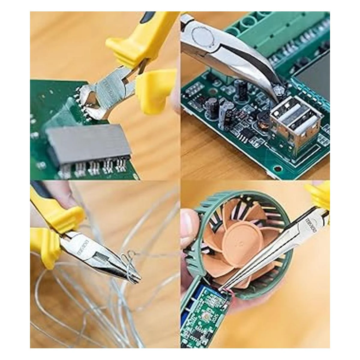 Juego de alicates de 6 piezas: este juego de alicates de precisión incluye mini diagonal de 4 pulgadas, mini nariz larga de 5 pulgadas, corte de extremo mini de 4 pulgadas, mini nariz de aguja de 6 pulgadas, mini linesman de 5 pulgadas y mini nariz doblada de 5 pulgadas. Ideal para fijar tareas meticulosas, hacer trabajos de precisión, reparar proyectos electrónicos.
