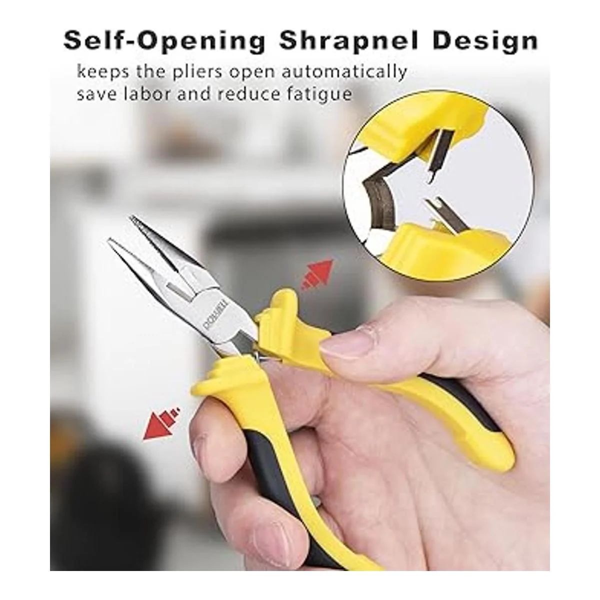 Shrap autoapertura: cada mini alicates está equipado con una contracción de doble resorte y mantiene los alicates abiertos automáticamente, ahorra trabajo y es fácil de trabajar con dos o tres dedos en zonas estrechas para reducir la fatiga. Es fácil trabajar con dos o tres dedos para realizar trabajos de precisión en espacios de difícil acceso.