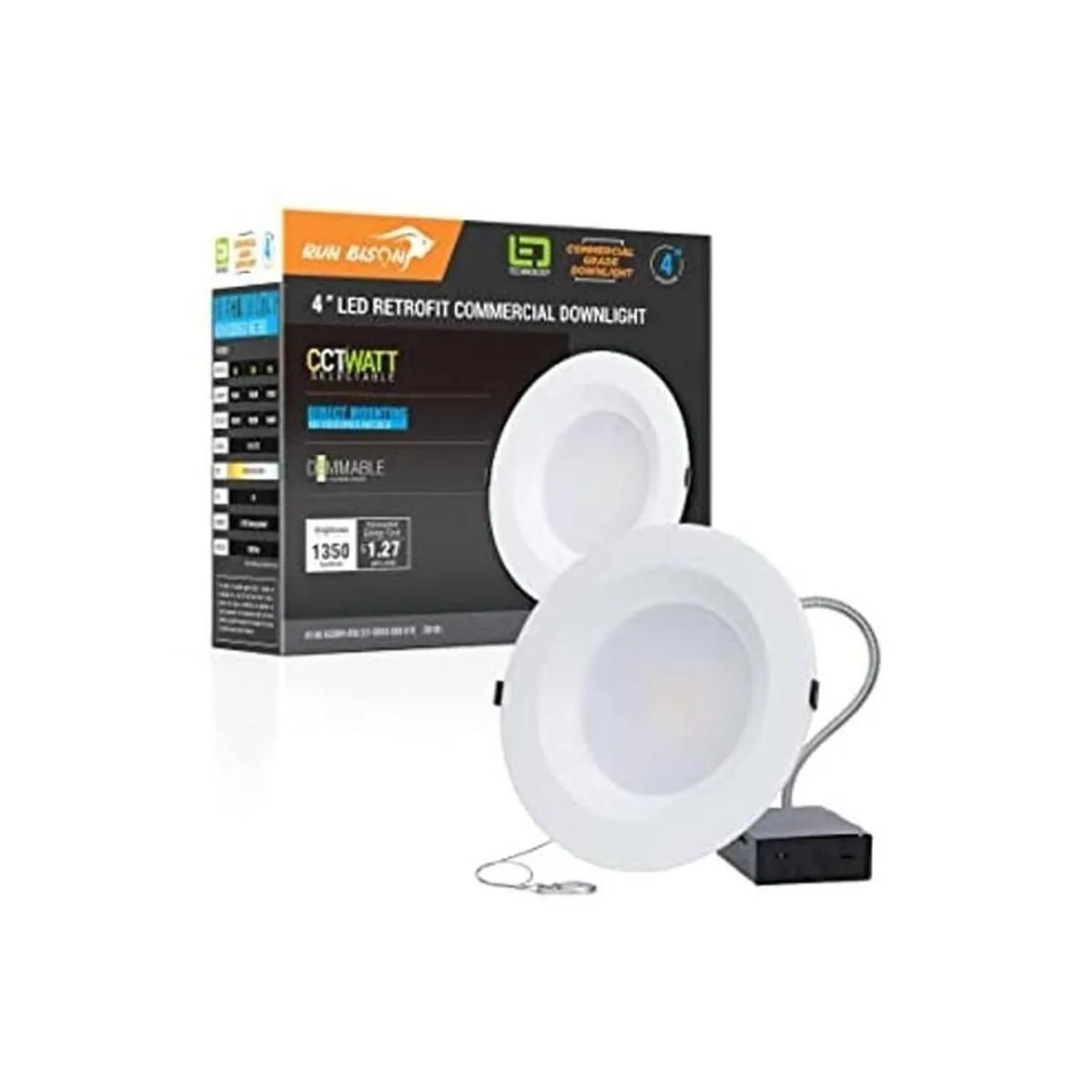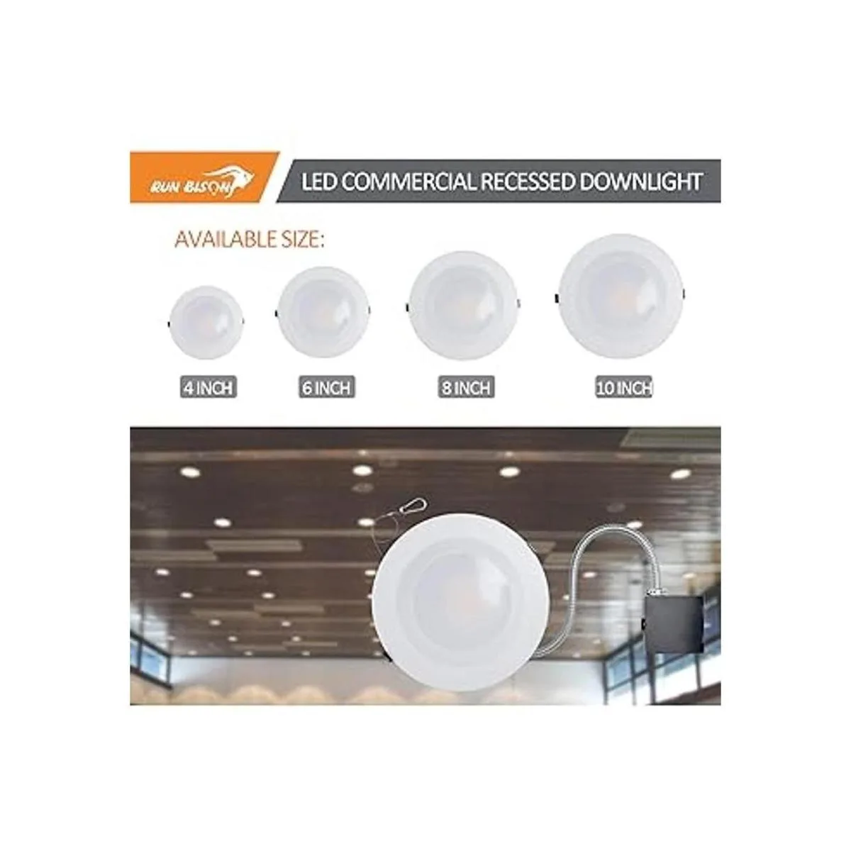 Color ajustable de 3 cct: el BISON de 4 pulgadas. La luz descendente comercial LED proporciona 3 temperaturas de color de blanco suave de 3000 K, blanco frío de 4000 K o blanco brillante de 5000 K para la selección, puedes elegir la luz más adecuada para la sala de estar, dormitorio, baño y otras áreas de acuerdo a tus preferencias componentes