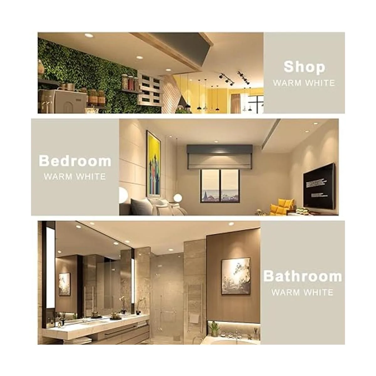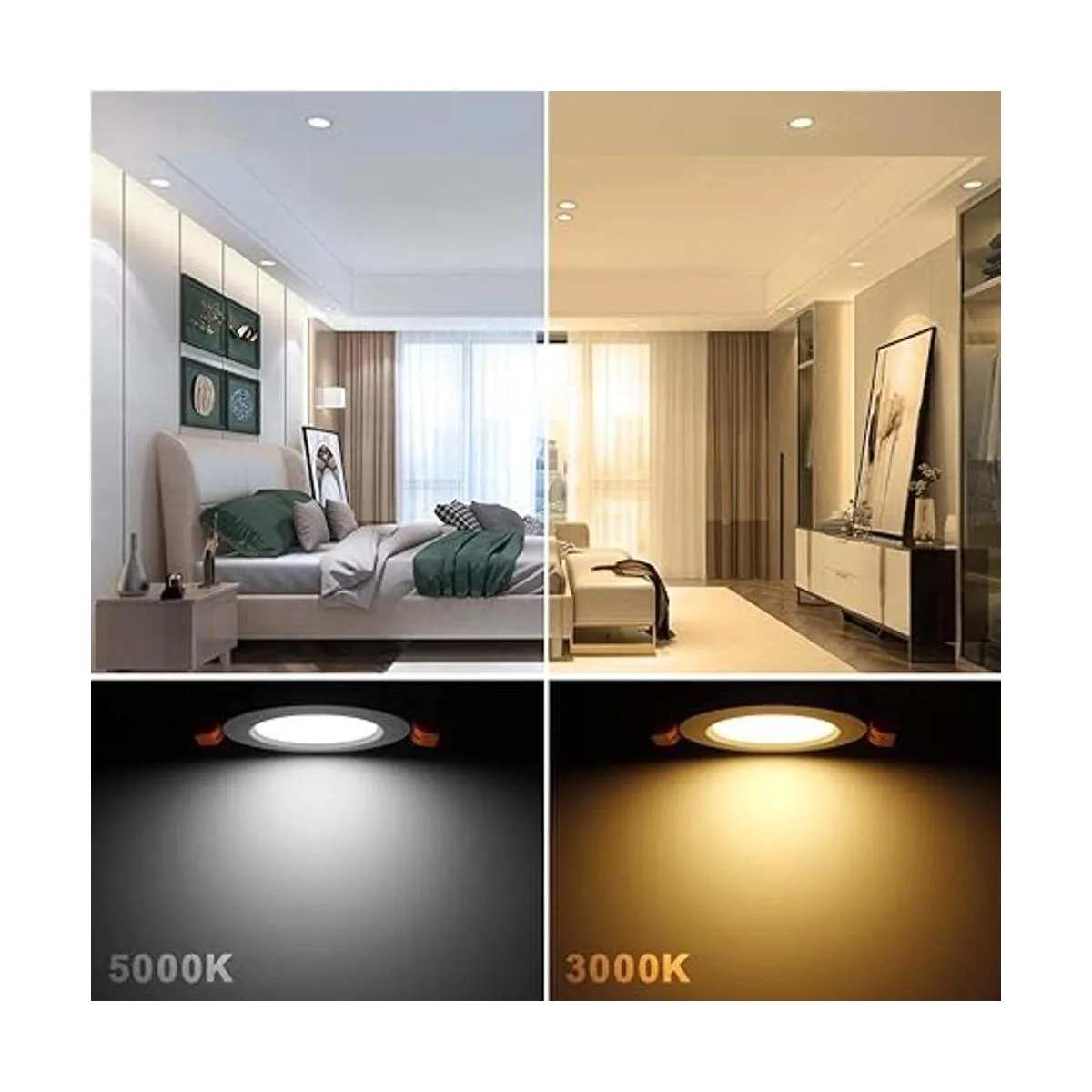 Regulable y alto CRI: estas luces LED tienen una capacidad de atenuación suave 10100, se adaptan a reguladores LED modernos. CRI80, proporciona una luz de calidad cercana a la luz solar para una reproducción de color real y consistencia dentro de tu hogar, muestra el color natural más vibrante.