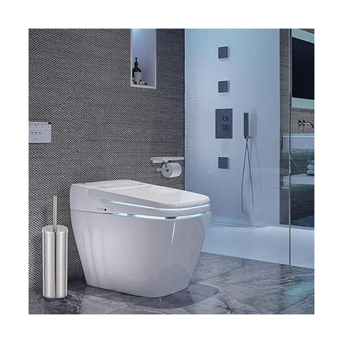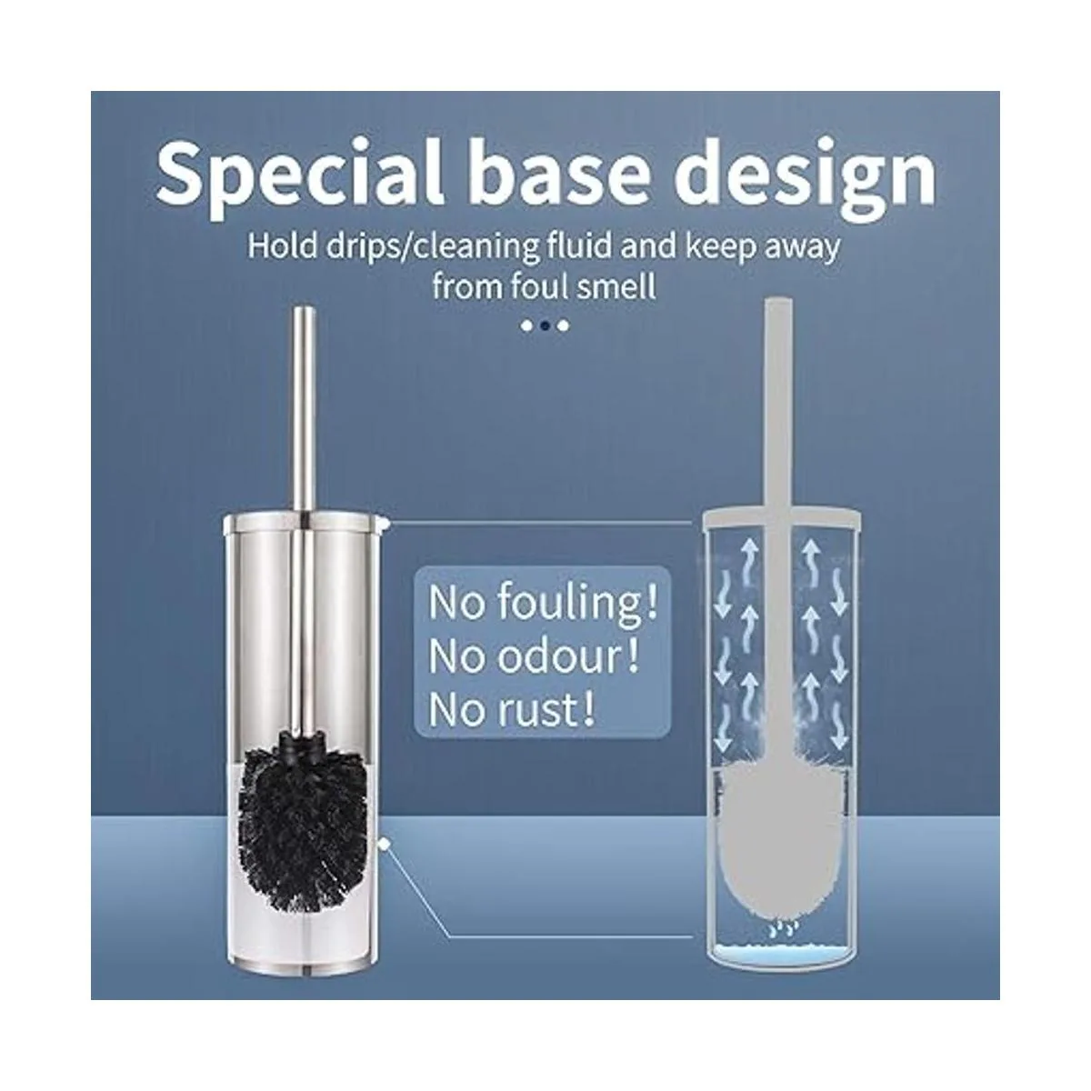 Diseño único: hecho de acero inoxidable 304, no se oxida ni se rompe para una larga vida útil. Te mereces tener este cepillo de inodoro de acero inoxidable de alta calidad con un soporte.