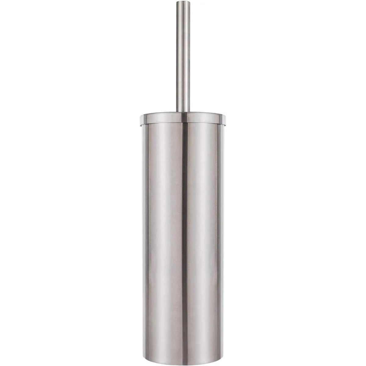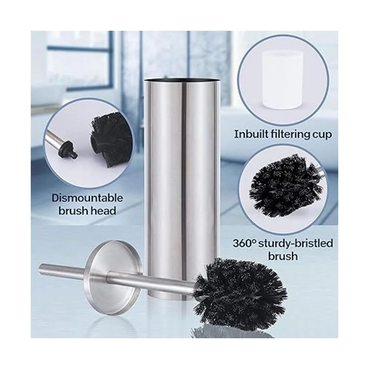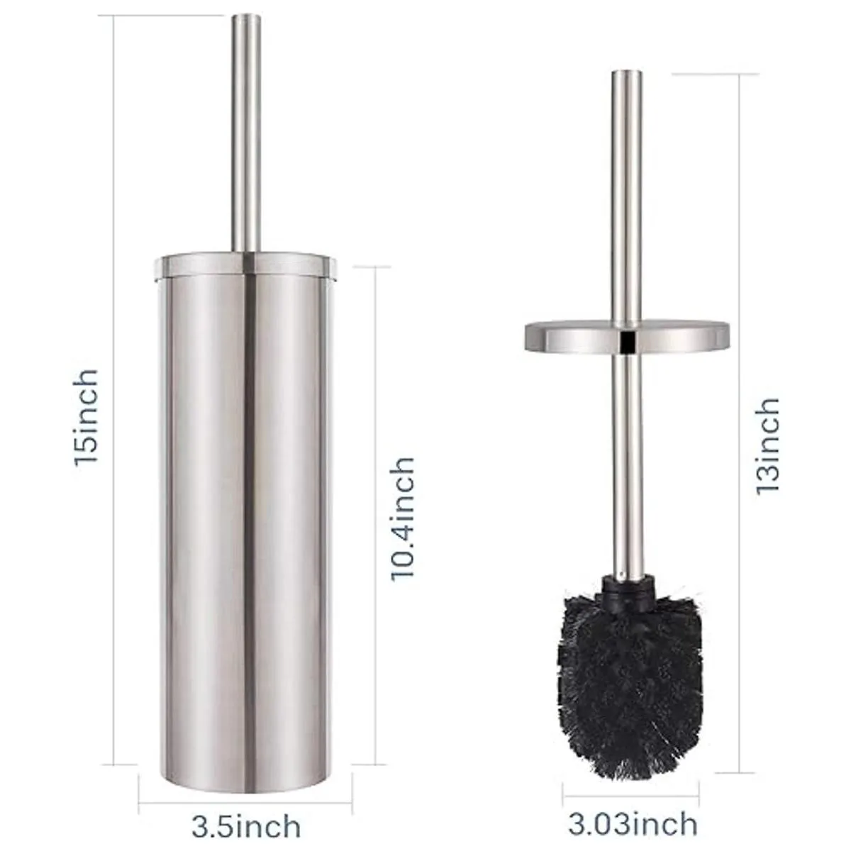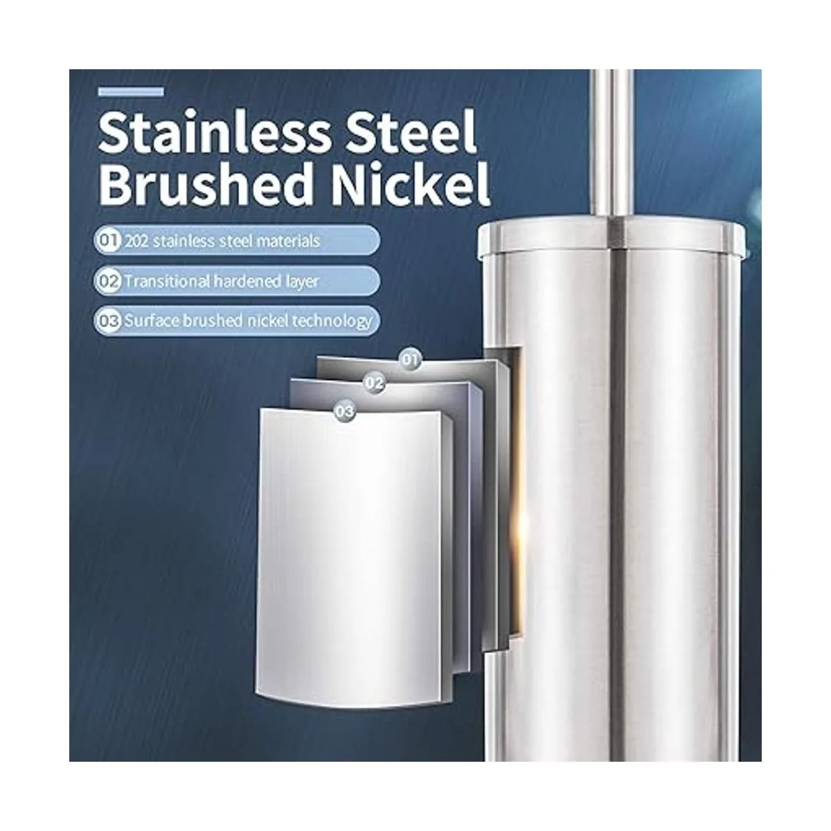 DOWRY Cepillo y soporte de inodoro independiente de acero inoxidable con mango largo para organización de almacenamiento de baño, cepillo limpiador de inodoro resistente de limpieza profunda, níquel SS3043