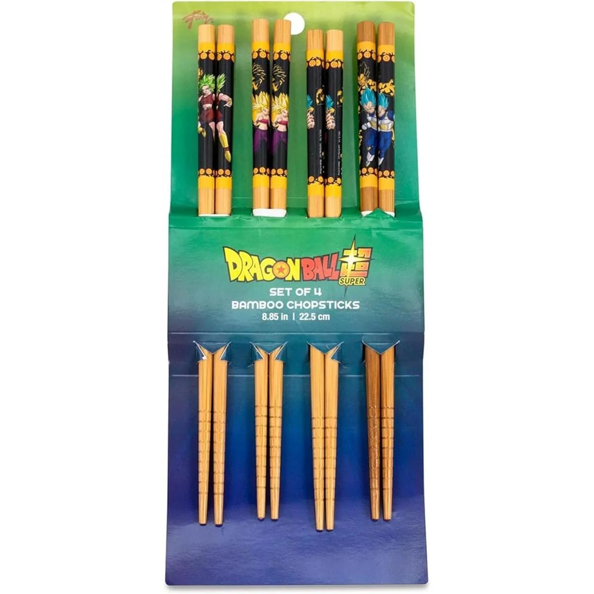 Dragon Ball Palillos de bambú de madera, juego de 4 Juego de utensilios para fideos ramen, vajilla japonesa para cocina en el hogar Oficial Anime Manga coleccionable con Goku, Vegeta