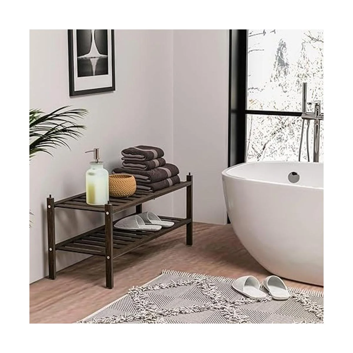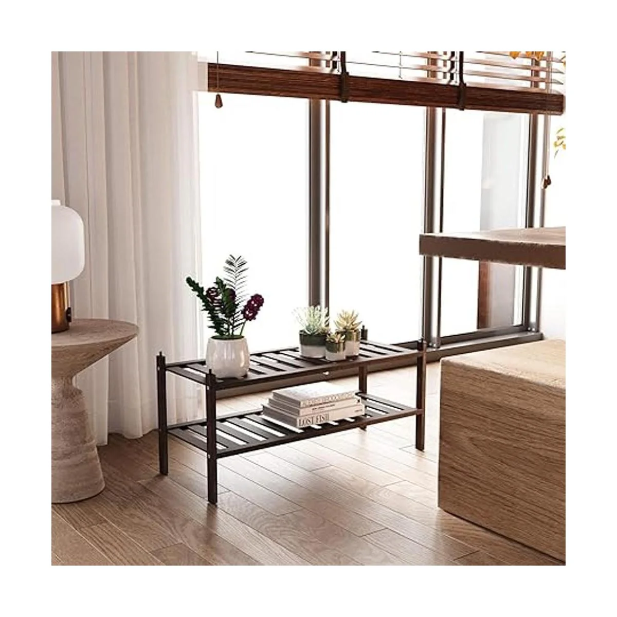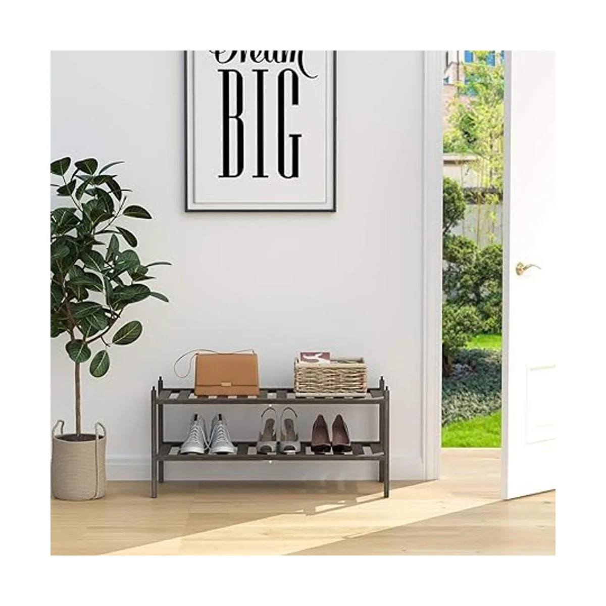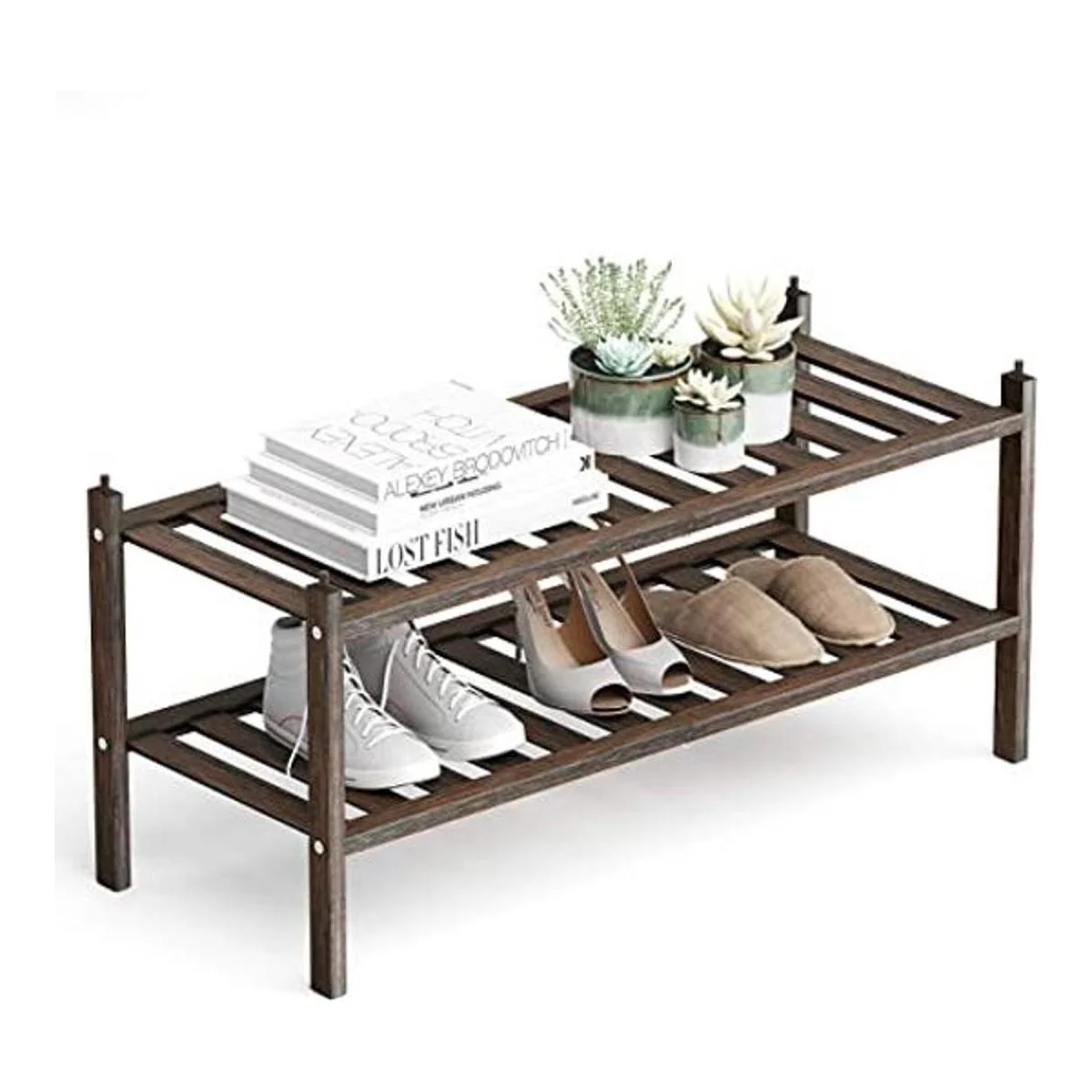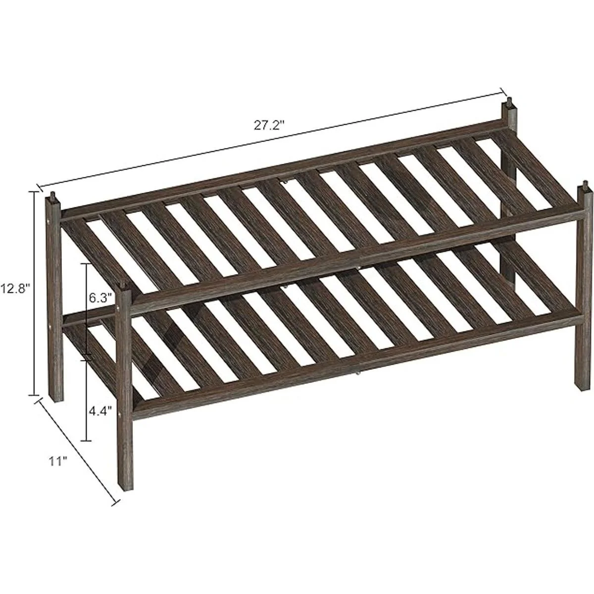 Dranixly Zapatero apilable de bambú de 2 niveles para zapatos, organizador de almacenamiento para entrada, pasillo y armario, 27.2 x 11 x 13.2 pulgadas Mocha