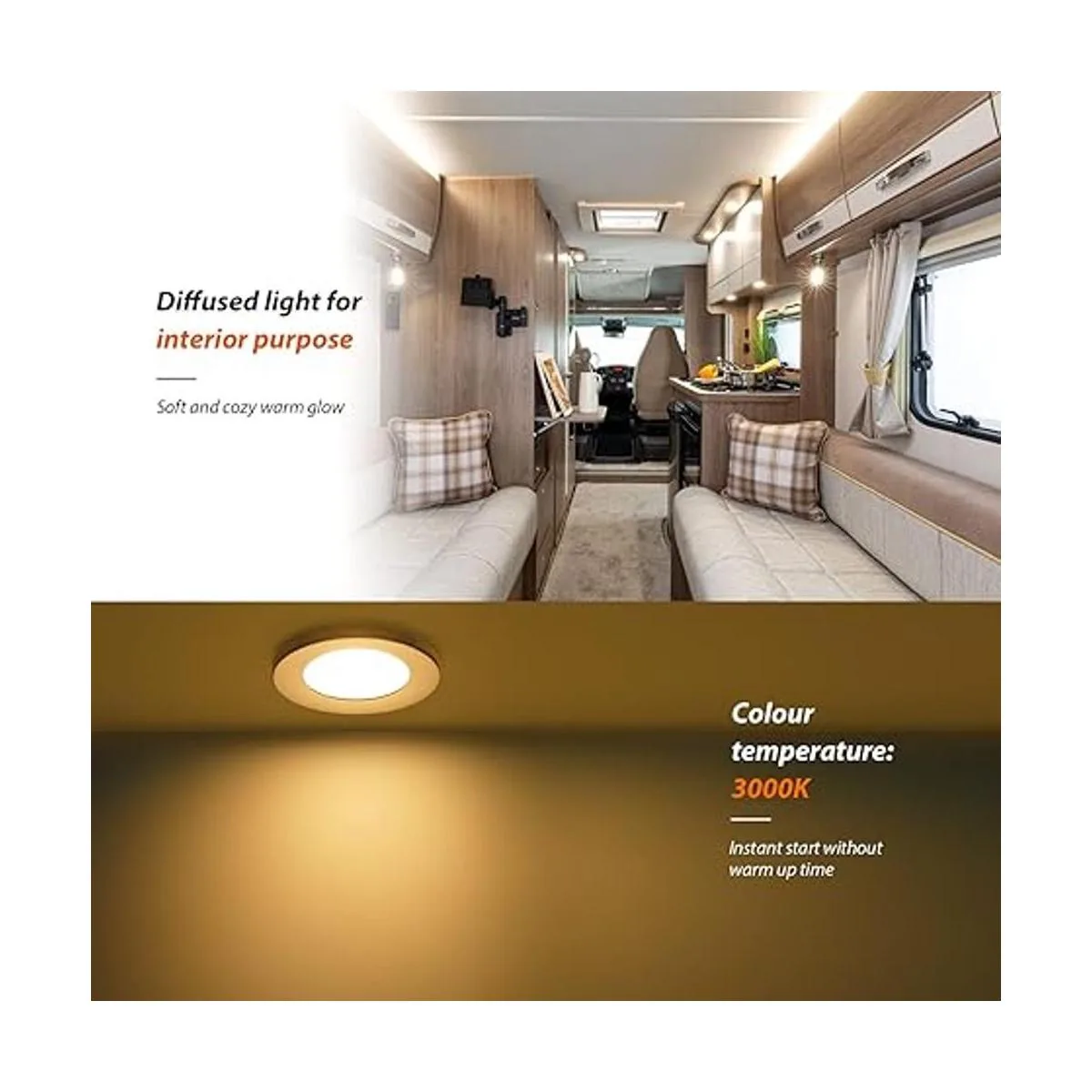Esta luz de RV LED empotrable abajo está diseñado para aplicaciones de RV, autocaravana, caravana, barco, yatch de techo .