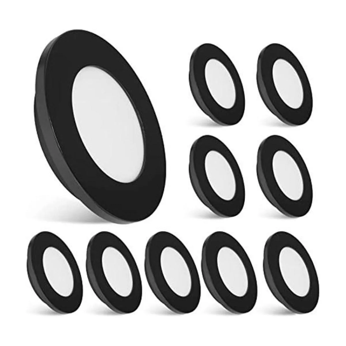 Dream Lighting Dispositivo de iluminación LED empotrado Luces LED para el techo de 2W Empotrado para superficie blanca con cobertura negra, paquete de 10