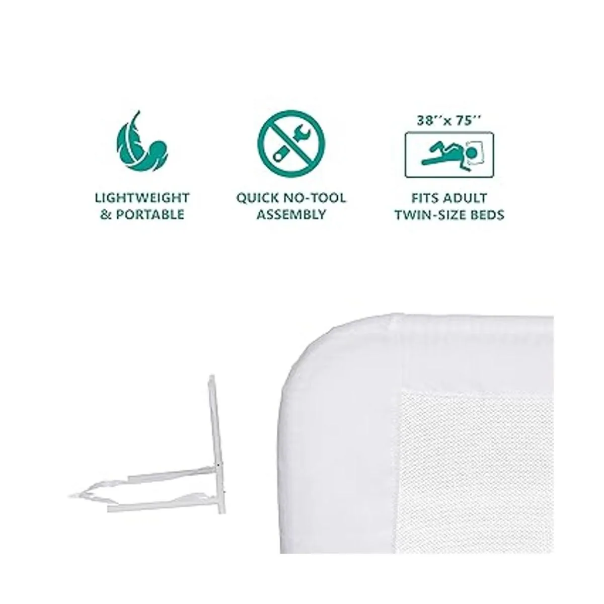 Fácil instalación: La baranda de seguridad de malla Dream On Me se instala en segundos, gracias al montaje sin herramientas. Es ligera y portátil, llévala fácilmente en tus viajes. Se adapta a las camas de tamaño individual para adultos con una altura mínima de colchón de 10 pulgadas.