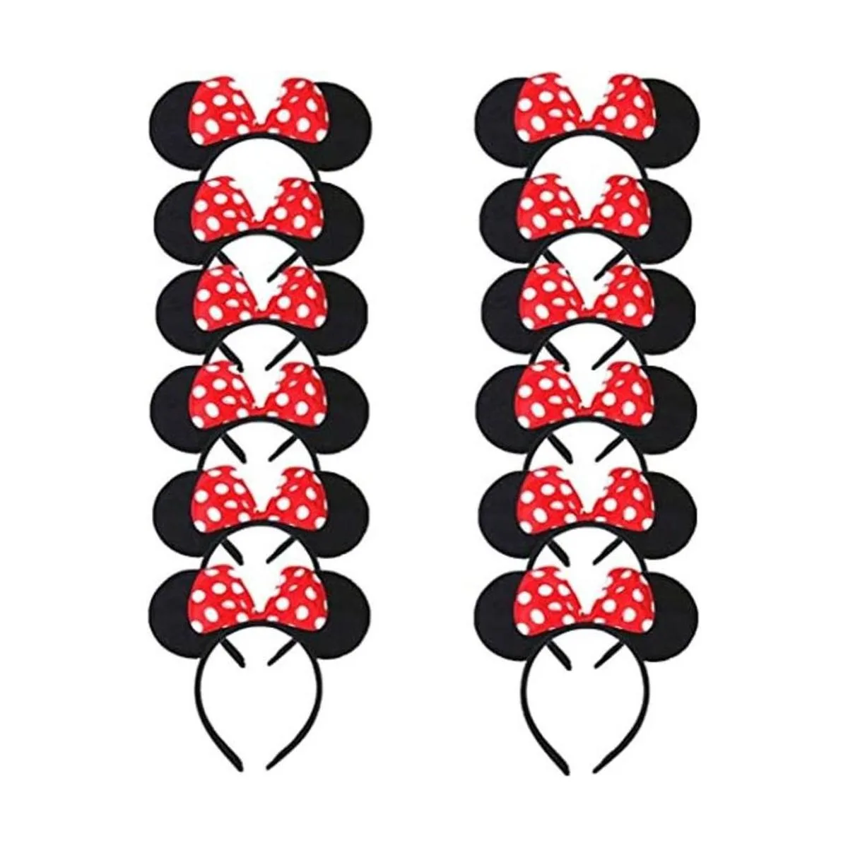DreamHigh Minnie Mouse Juego de 12 diademas para disfraz de cumpleaños para niñas, diseño de arco rojo