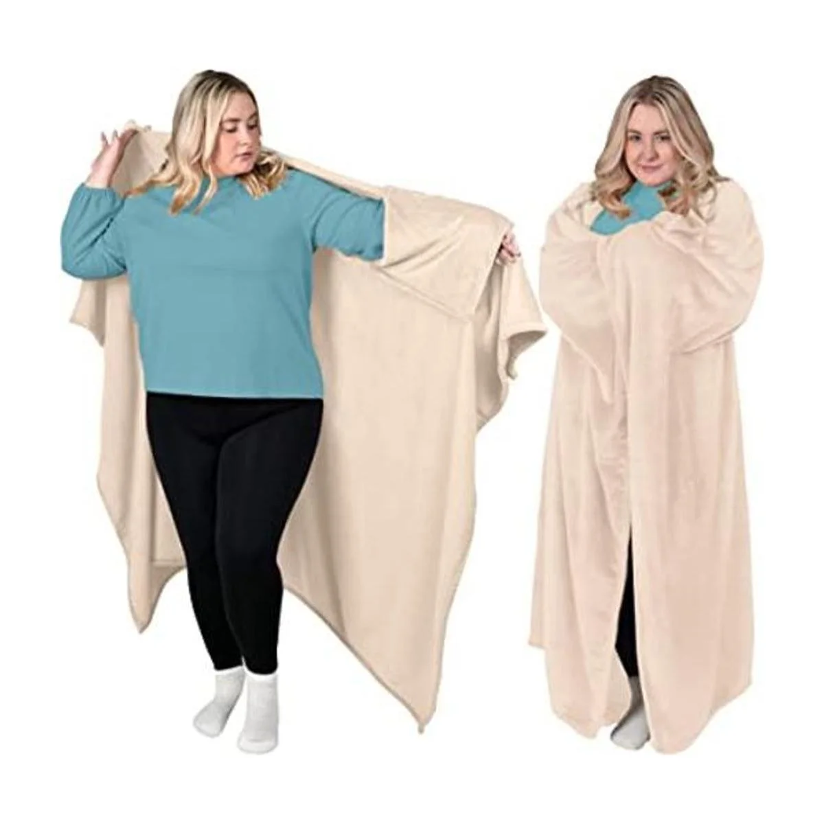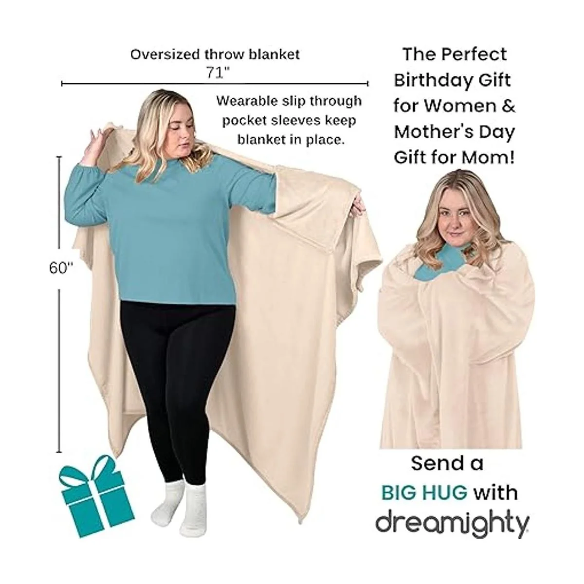 Dreamighty The Cozy Hug Manta acogedora con mangas para vestir, suave y cómoda, color crema y marfil, para sofá y cama, regalo de cuidado personal y cumpleaños para quienes lo tienen todo