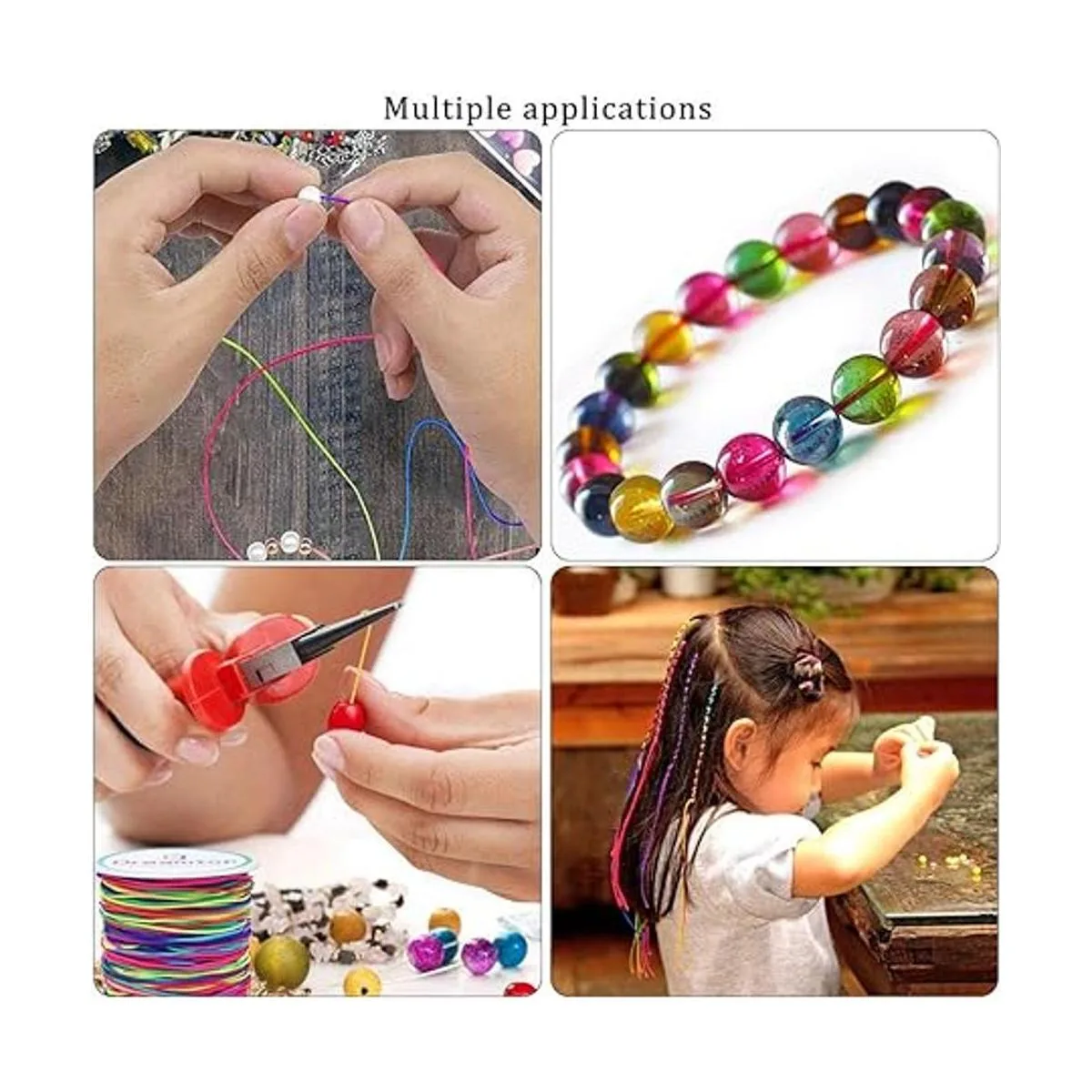 Cuerda arcoíris: el cordón elástico para cuentas es de color arcoíris, lo que hará que tu pulsera o collar sea especial y bueno para proyectos de cuentas y manualidades. La cuerda elástica de cuentas de pony es ideal para niños, artesanos y amantes del bricolaje. La cuerda elástica para pulseras es un gran regalo para Acción de Gracias y Navidad.