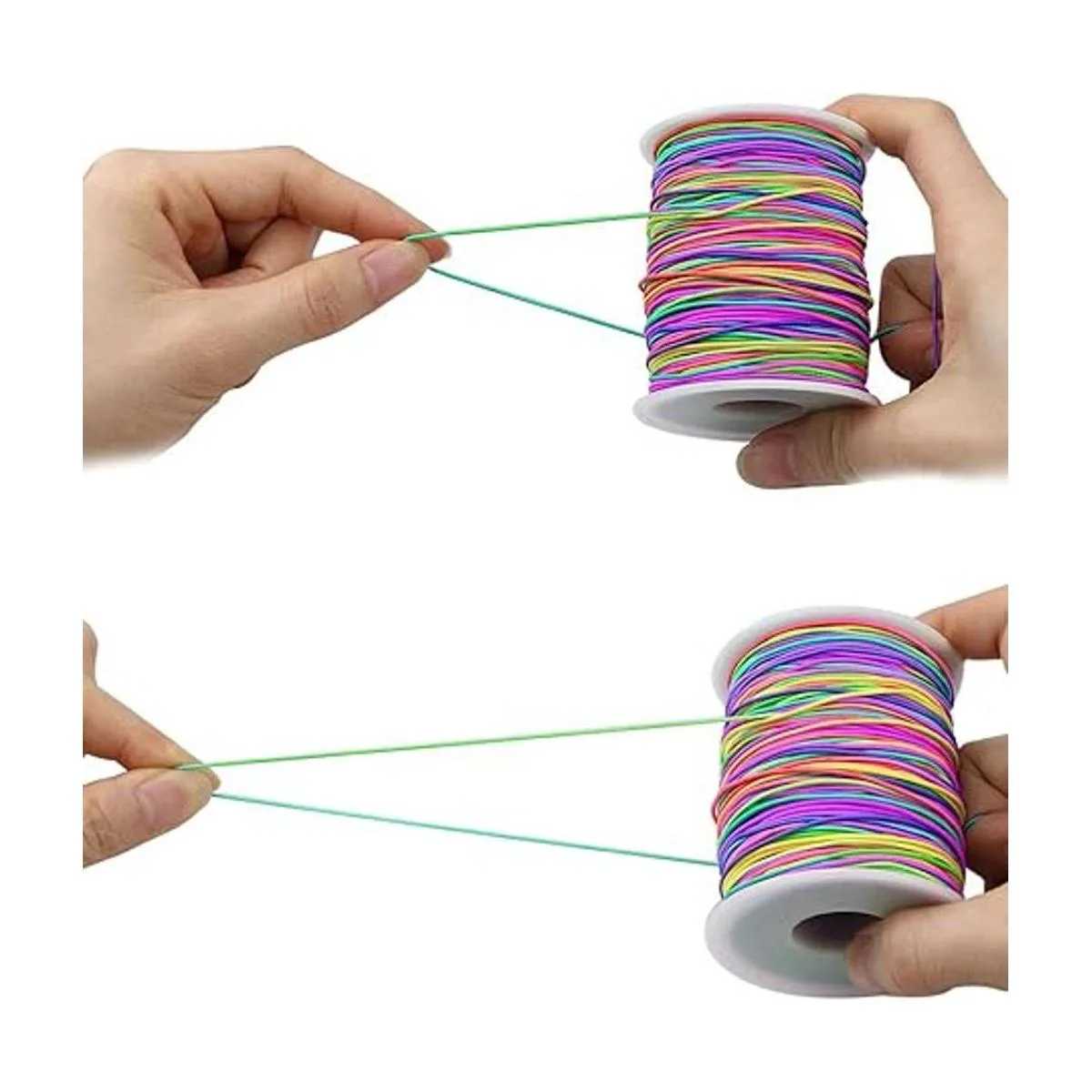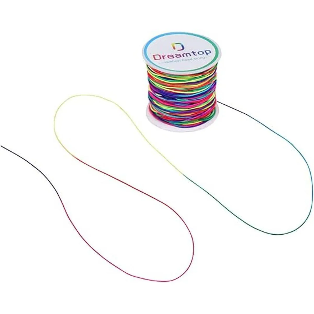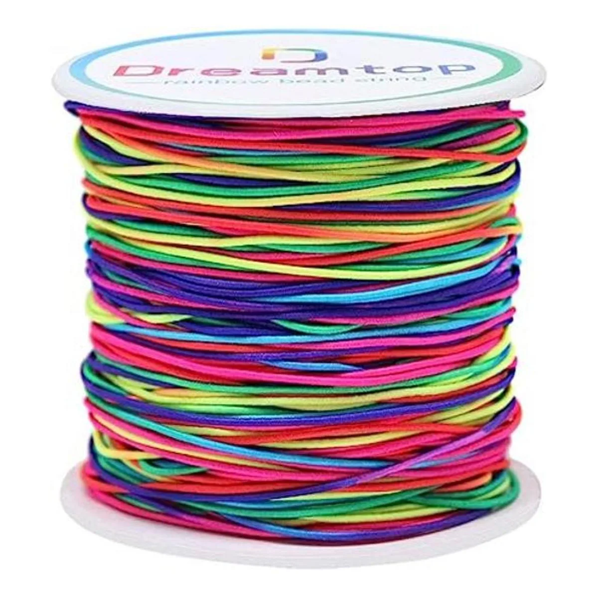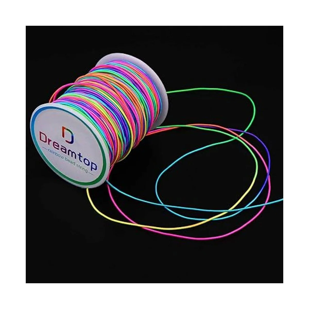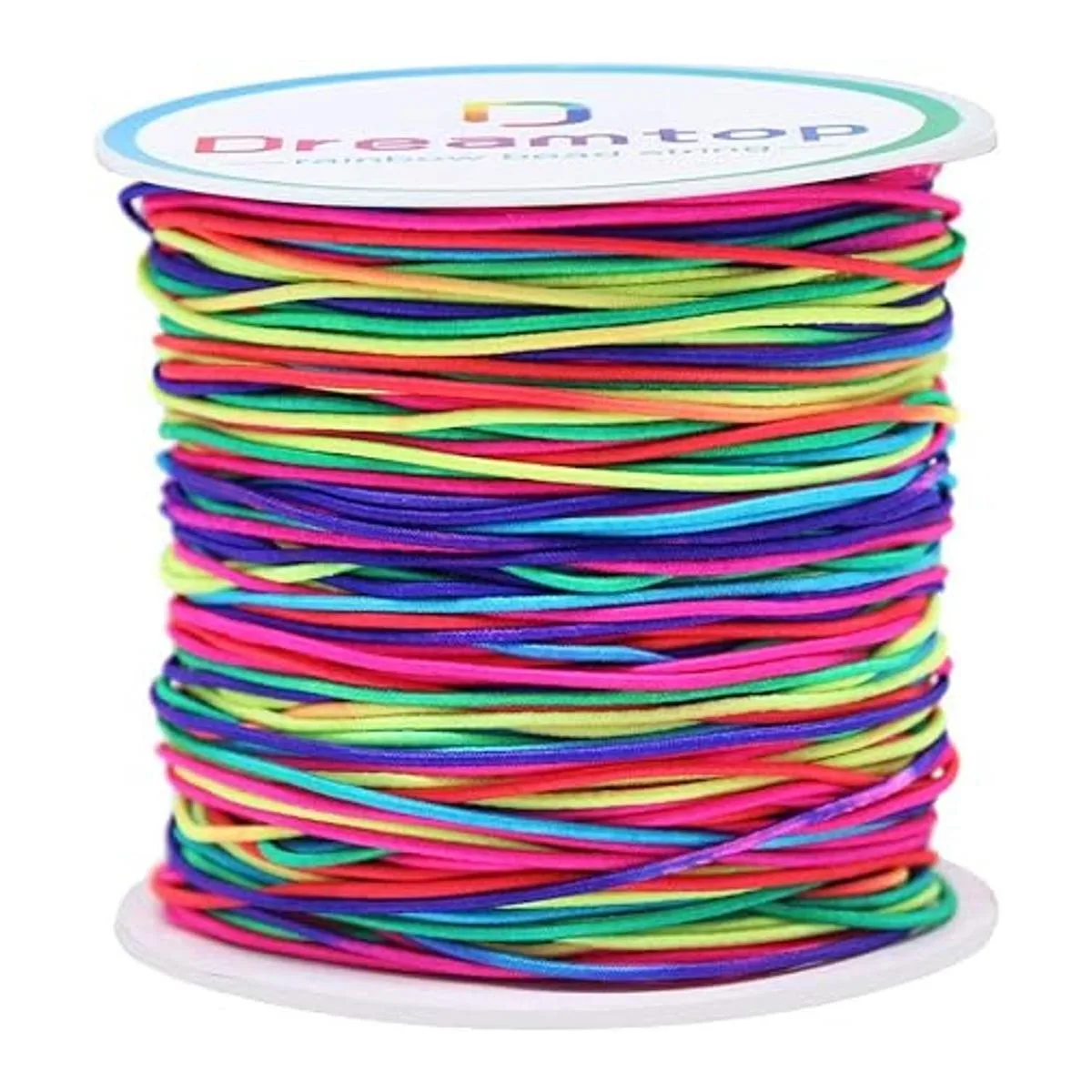 Dreamtop Cuerda elástica de arcoíris de 0.039 in de 328.1 ft para pulsera, cuerda elástica de cuentas de poni para pulseras, cuerda de cuentas de arco iris para hacer pulseras, collar y manualidades, 109 yardas