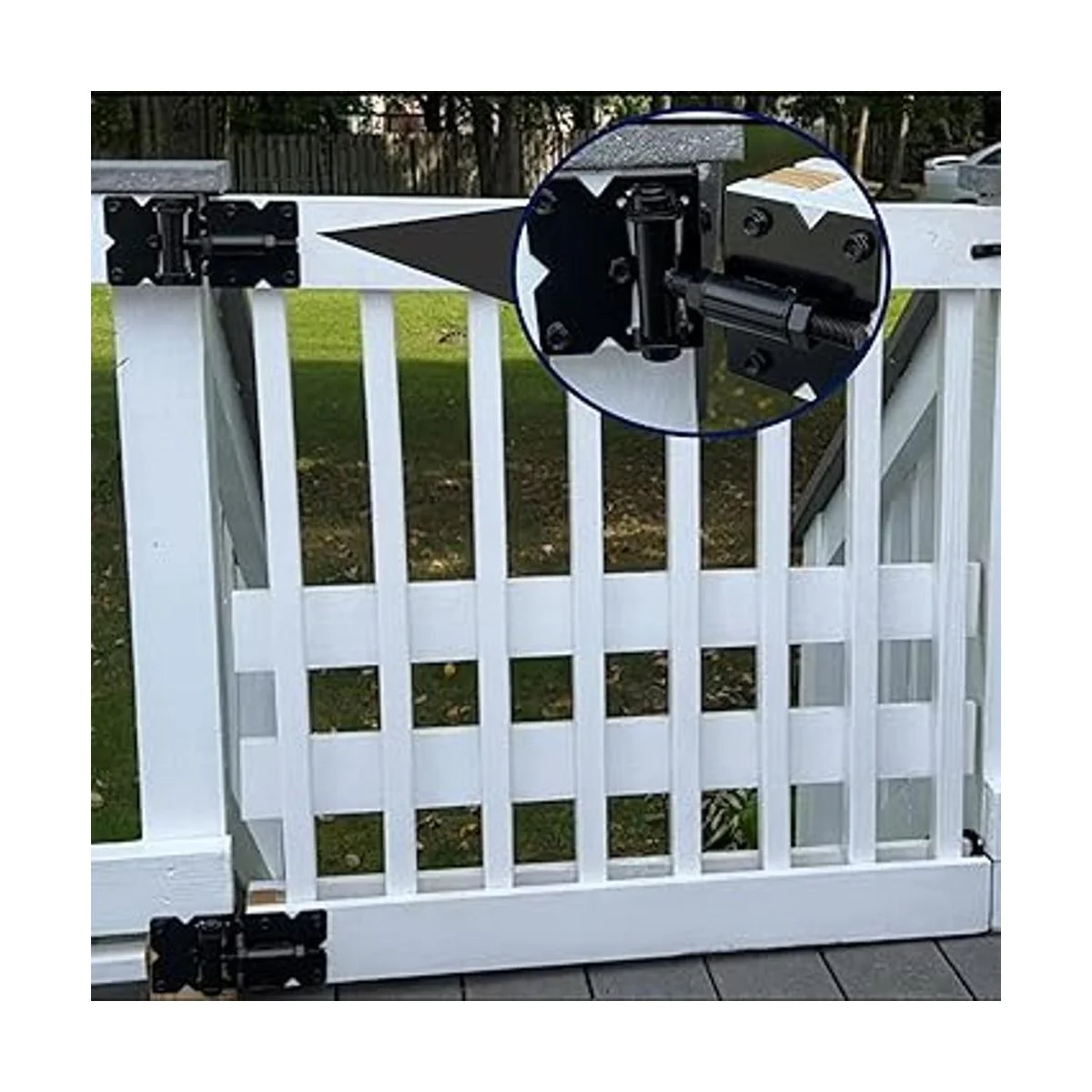 Fácil de instalar: las bisagras de puerta de cierre automático se pueden instalar sin instrucciones de instalación. Asegúrate de que haya al menos 0.25 pulgadas de hueco, por lo que las bisagras de la puerta se pueden instalar. Estas bisagras de puerta de valla son ajustables de 3/4 a 11/2 pulgadas entre el poste de la puerta y el marco de la puerta. El peso máximo de soporte de 1 juego de bisagras de valla es de aproximadamente 130 libras.