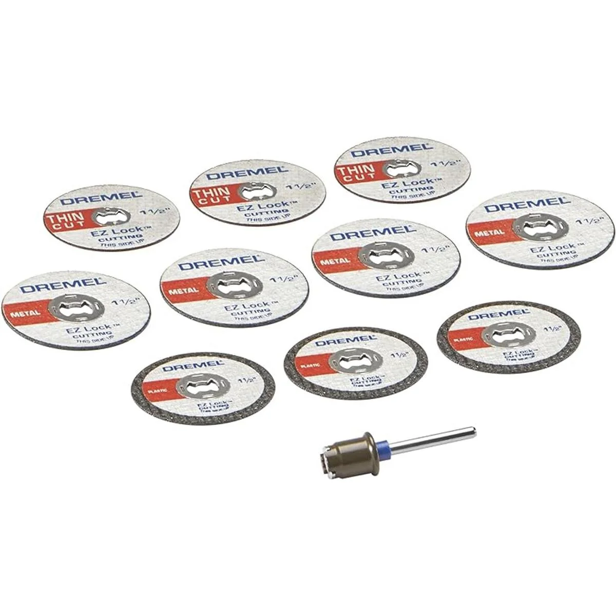 Dremel EZ72801 EZ Lock Juego de accesorios de discos de corte rotativos para plástico, metal y cortes finos, juego de accesorios surtidos de 11 piezas