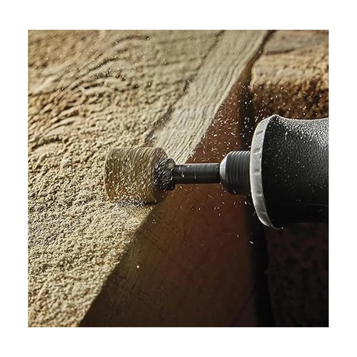 Montado en un mandril de acero extra fuerte, el tambor de lijado permite a los usuarios moverse lateral u orbitalmente para suavizar superficies, agrandar agujeros o crear cavidades irregulares.