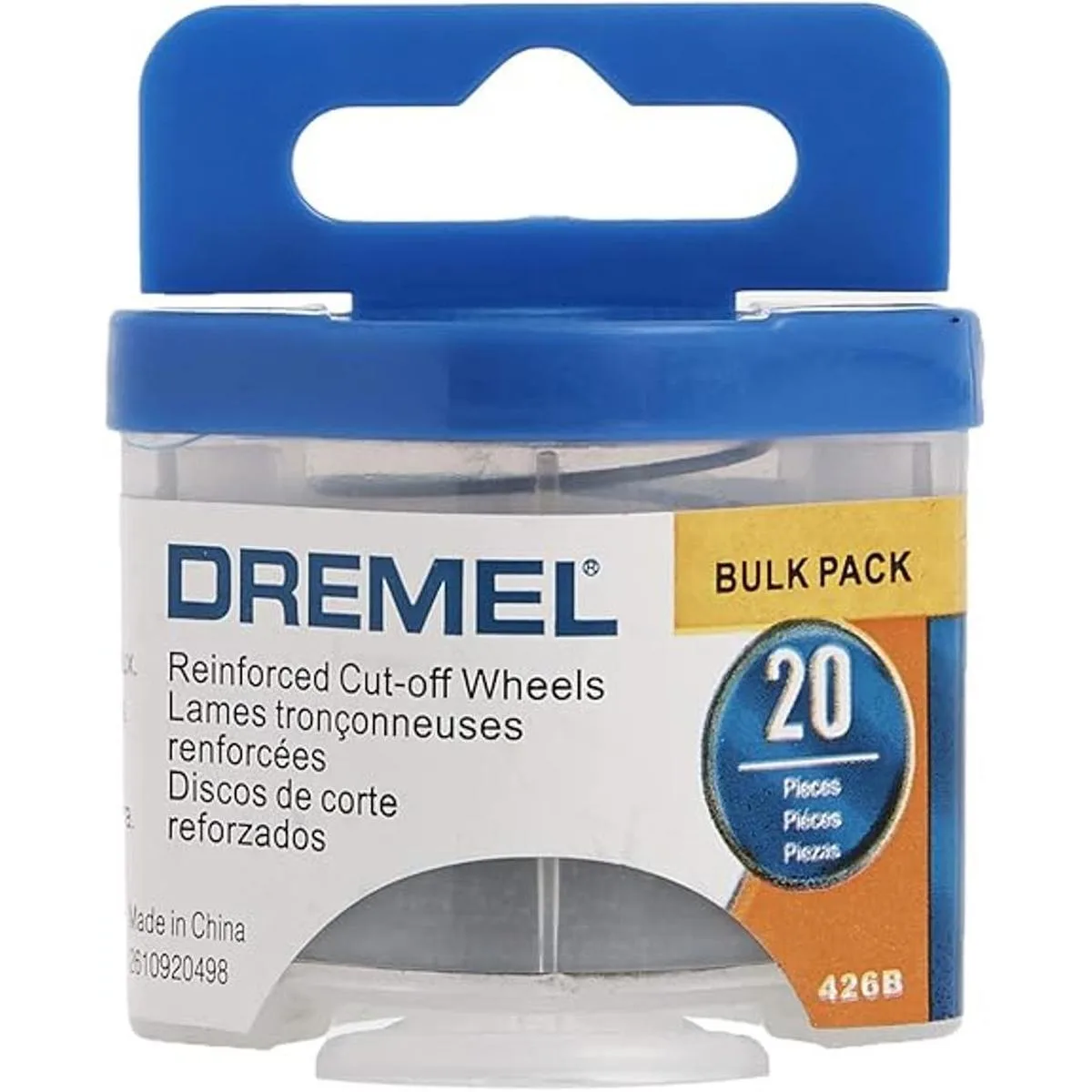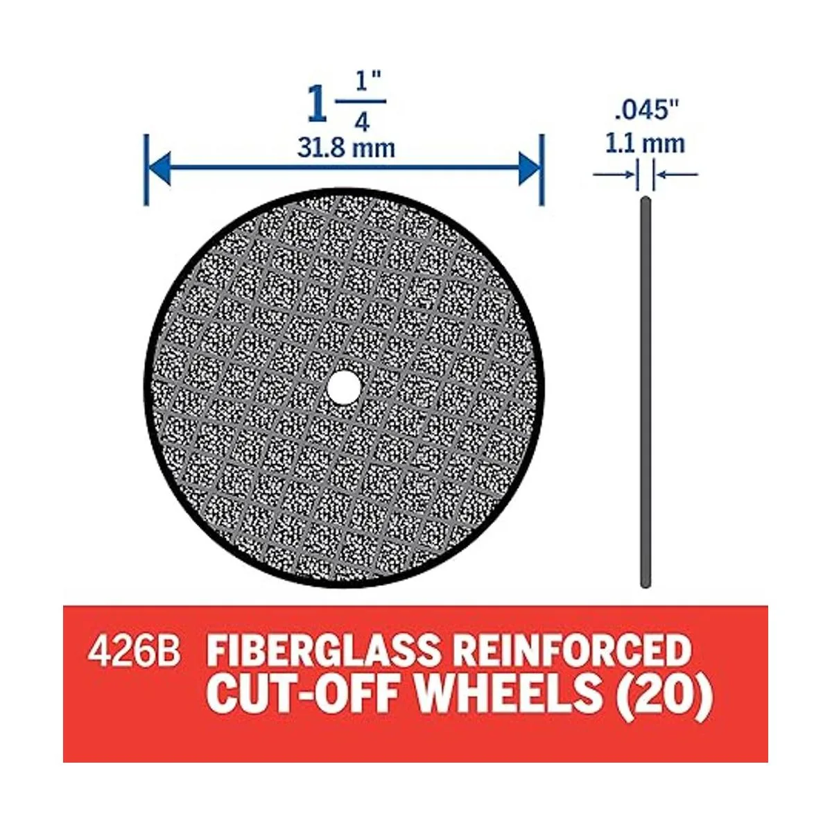 Dremel Ruedas de corte reforzadas con fibra de vidrio 426B, diámetro de la rueda de 132 pulgadas 0.031 in, accesorio de disco de corte para herramientas rotativas, 20 piezas, color plateado