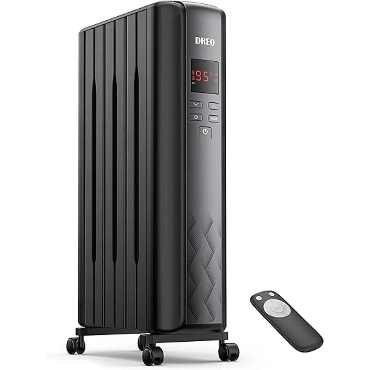 Dreo Calentador de radiador, calentador eléctrico portátil de 1500 W lleno de aceite con control remoto, 4 modos, protección contra sobrecalentamiento y vuelco, temporizador de 24 horas, termostato digital, silencioso, interior