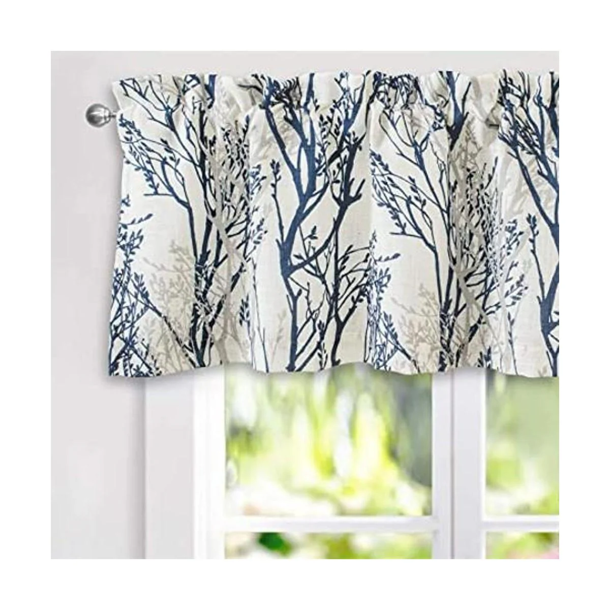 Estilo: la cenefa de cortina de ventana de rama de árbol tiene una estética moderna y cuenta con un patrón abstracto de pintura de tinta para crear un ambiente elegante y cómodo. El color de fondo es blanco roto. La cenefa proporciona una manera fácil y económica de añadir color y estilo a cualquier habitación de tu hogar, perfecta para sala de estar, dormitorio, habitación familiar, comedor, cocina, granja, baño, habitación de las niñas.
