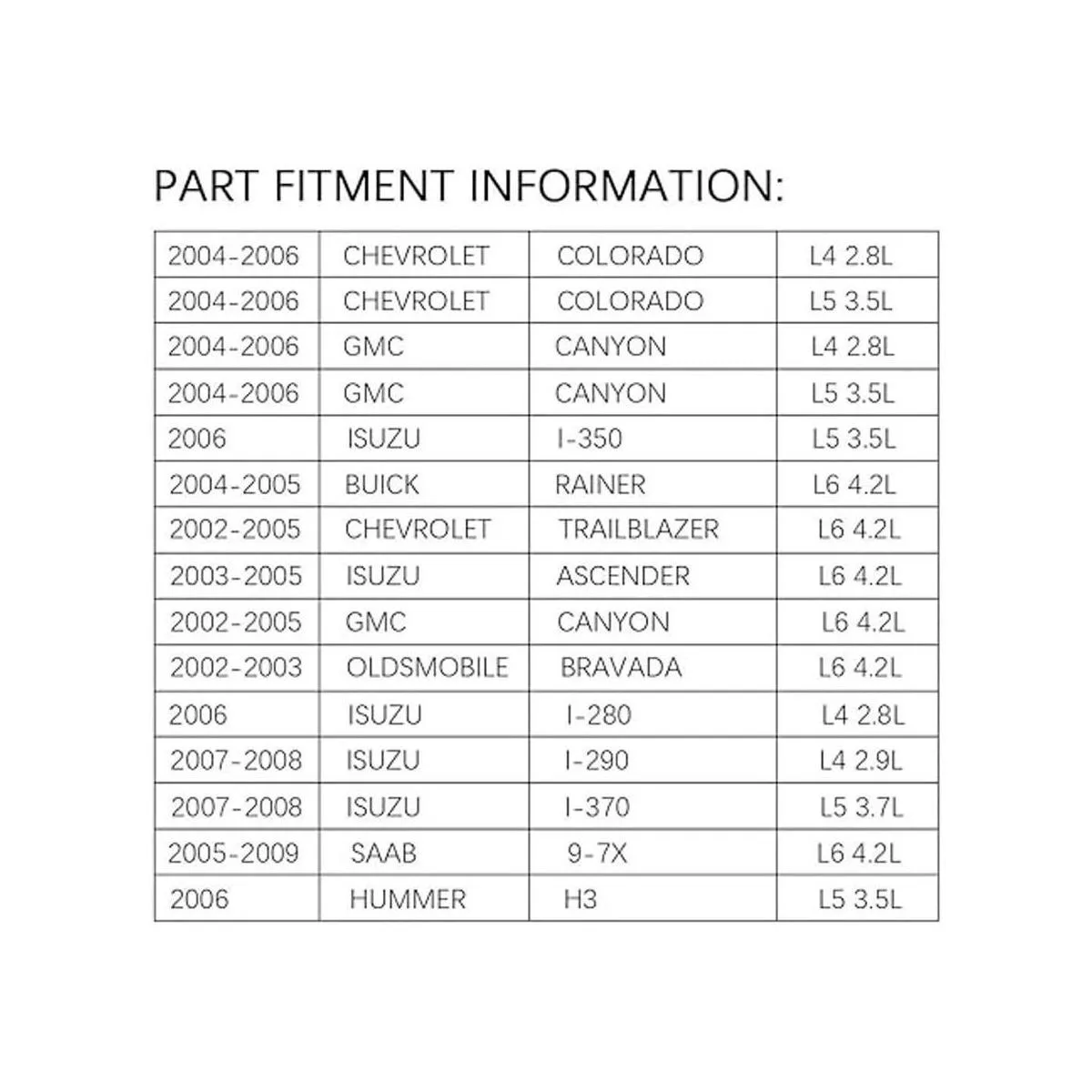 Ajuste: compatible con Chevy Colorado/Canyon 20042006, Trailblazer 200205 EXT/ EnvoyXL, Envoy XUV/Rainier 200509 97x, Bravada/I290/I370. , por favor utiliza Part Buscador para asegurarse de que el ajuste primero cuando compres. Gracias