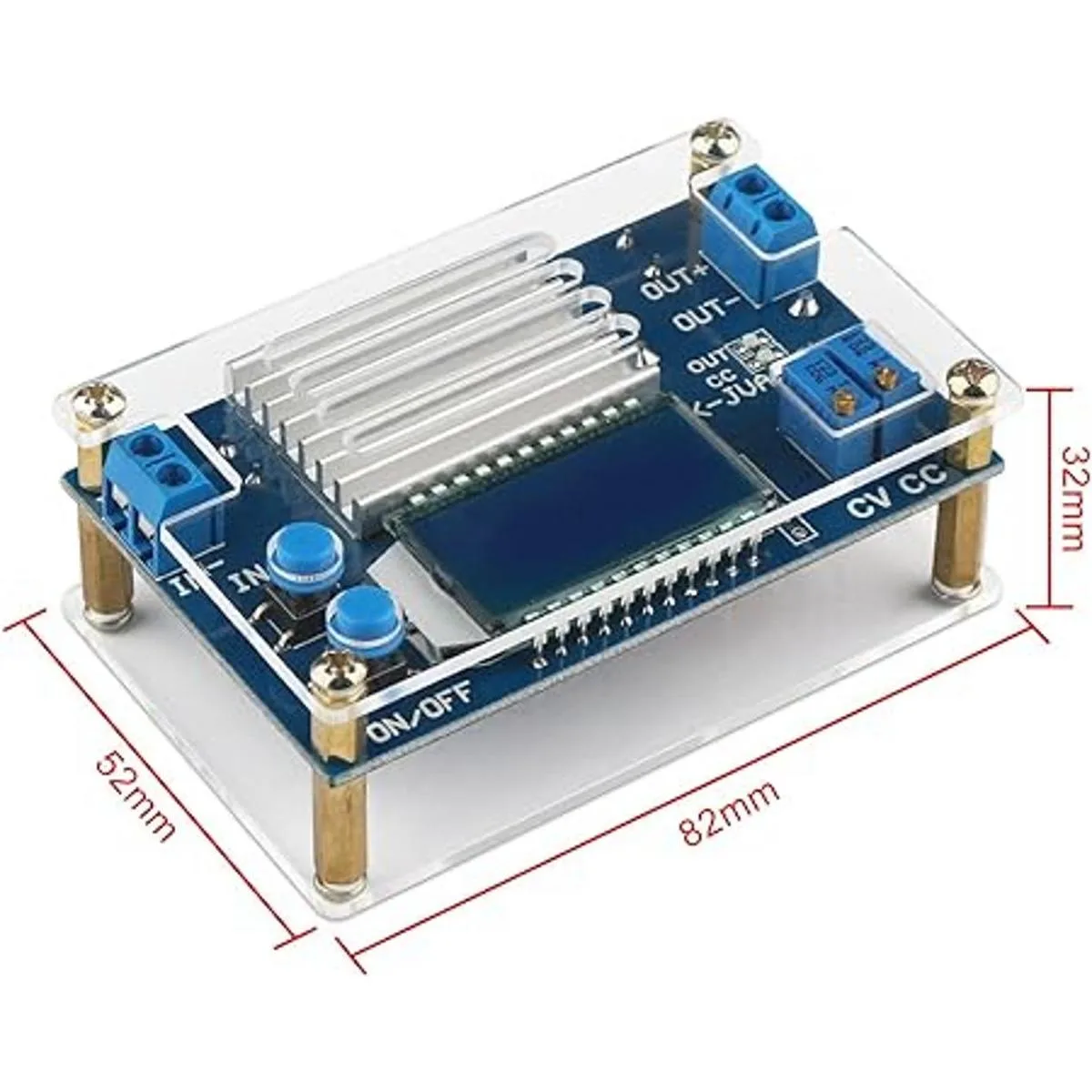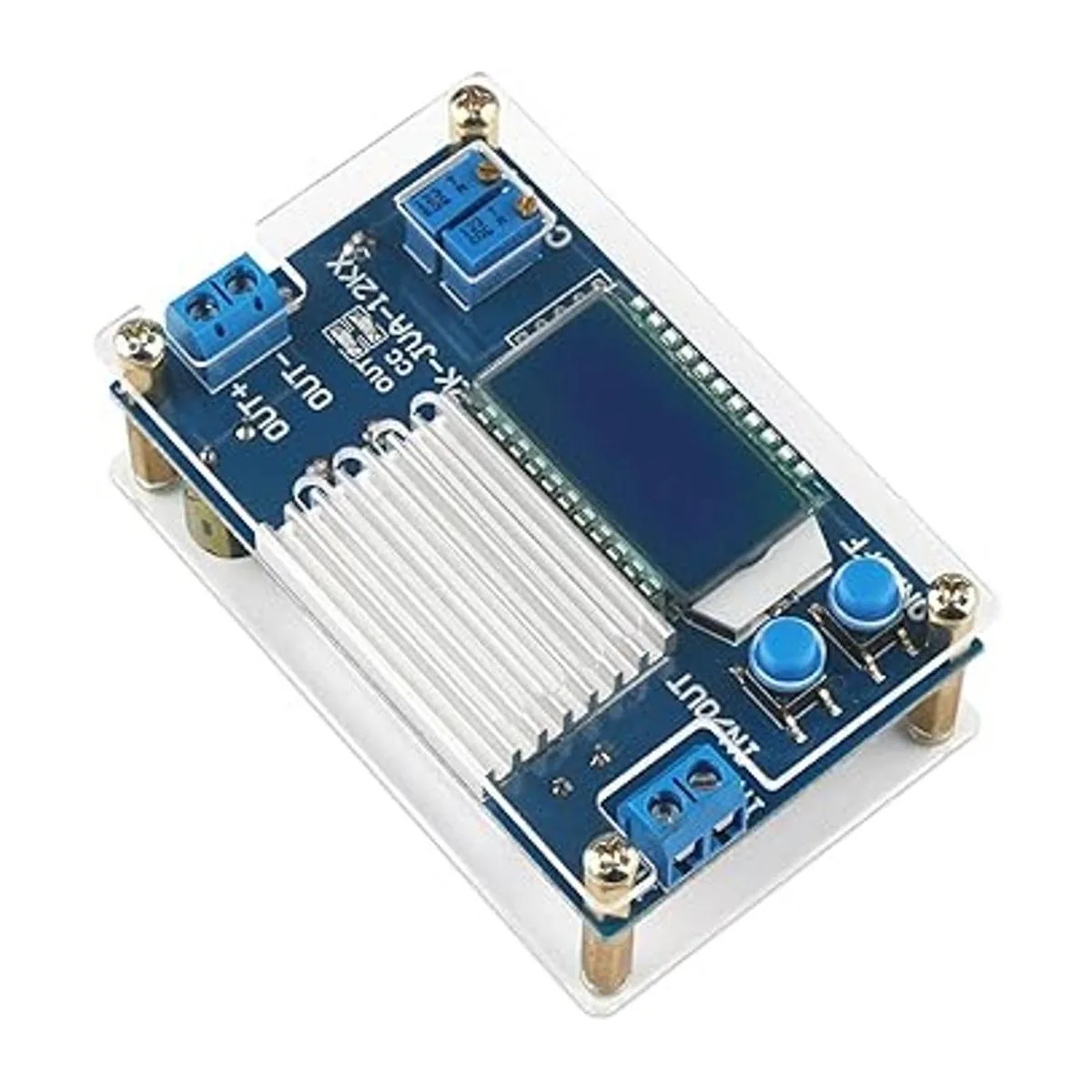 Características: este convertidor Buck está equipado con pantalla LCD, carcasa acrílica y disipador de calor. La pantalla LCD puede mostrar voltaje de entrada/salida, corriente de salida y potencia de salida. La precisión del voltaje es de 0,05 V, la precisión de corriente es de 0,005 A. La funda acrílica puede mantener la placa convertidor lejos del polvo, lo que es protector. El disipador de calor puede mantener el módulo de 120 W para un uso prolongado a baja temperatura. Si quieres alcanzar la potencia máxima de 160 W, mejora la disipación del calor.