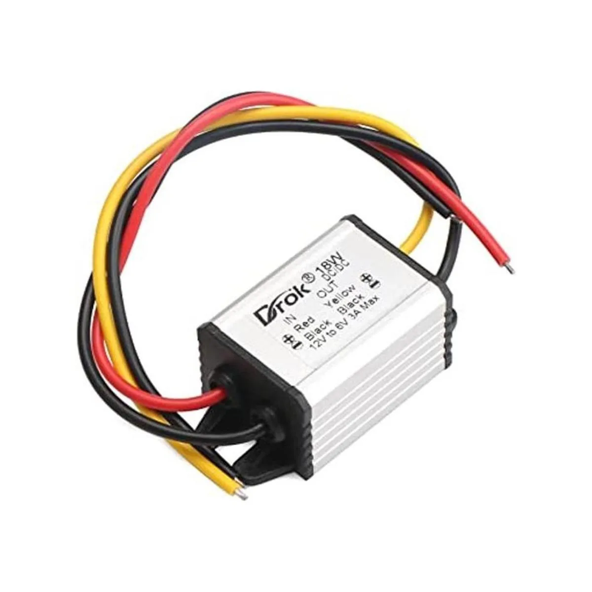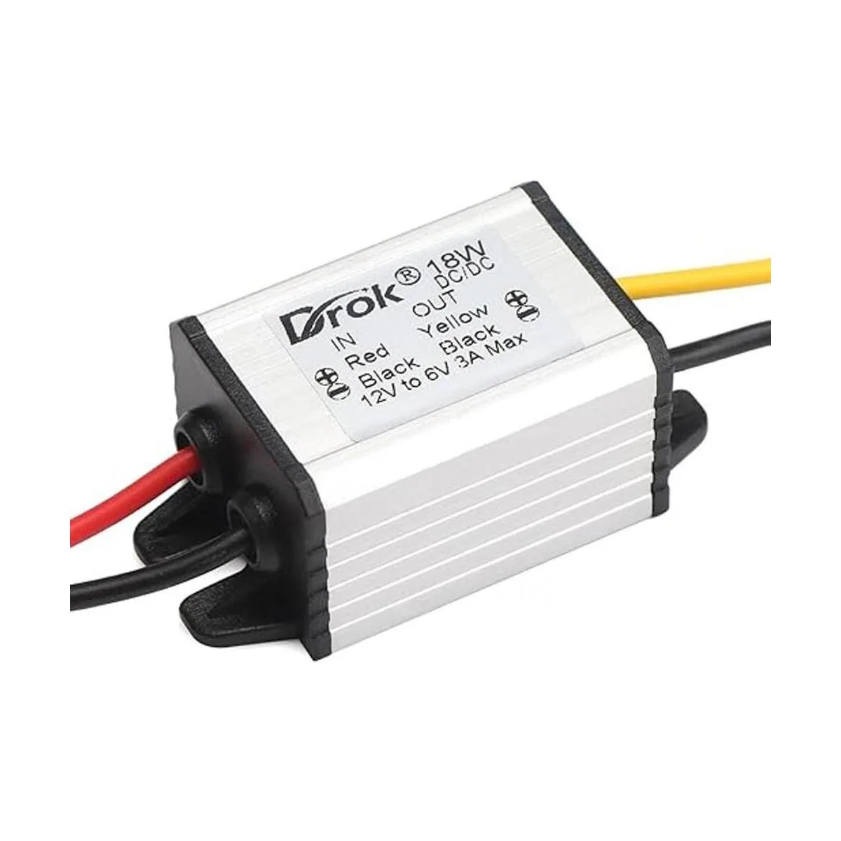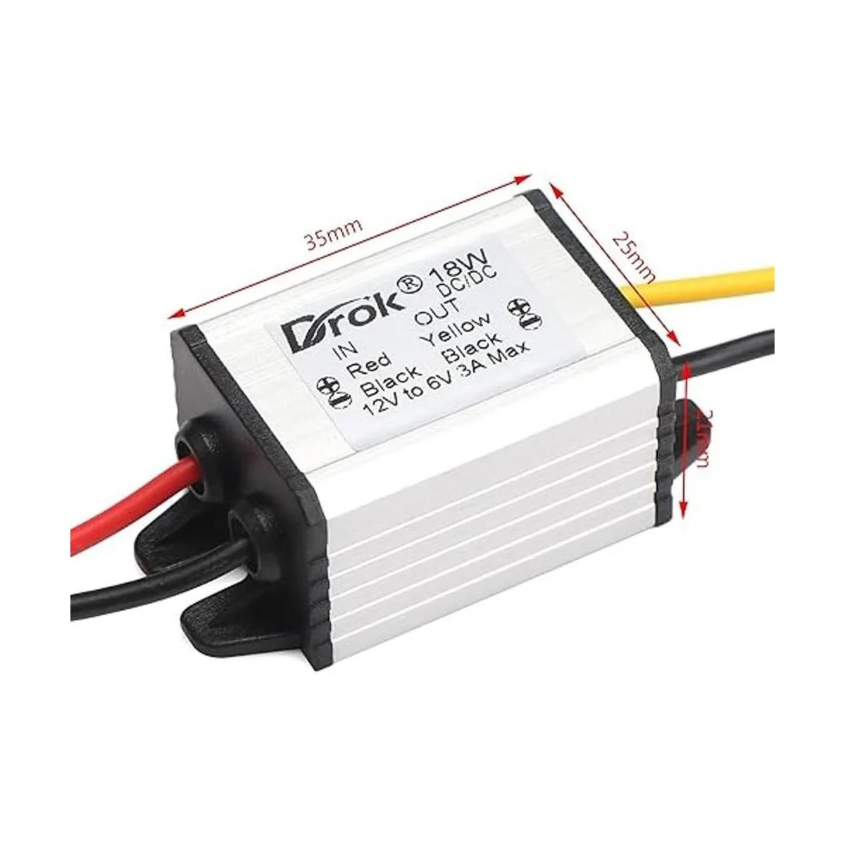 DROK Convertidor de corriente de coche impermeable de alta eficiencia DC12V a 6 V3 A. Reduce el voltaje del módulo 922 V a 6 V., 1