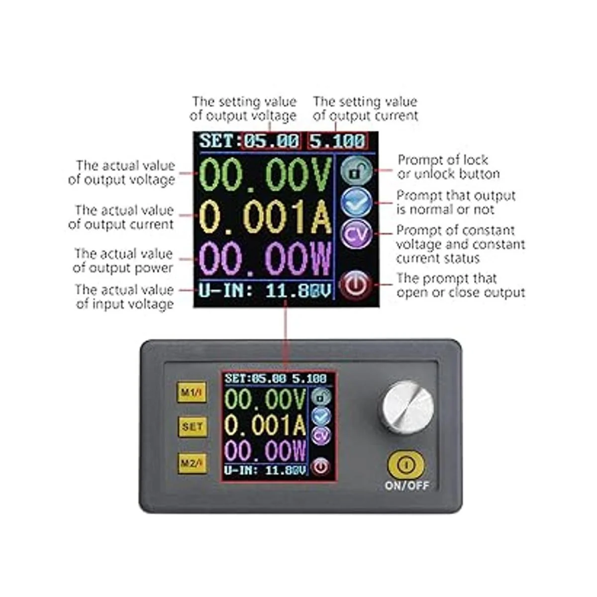 DROK DC converter is the combination of analog integration and digital control. Its adjustable output voltage range is 050.00V, step by 0.01V; its adjustable output current range is 05.000A, step by 0.001A.