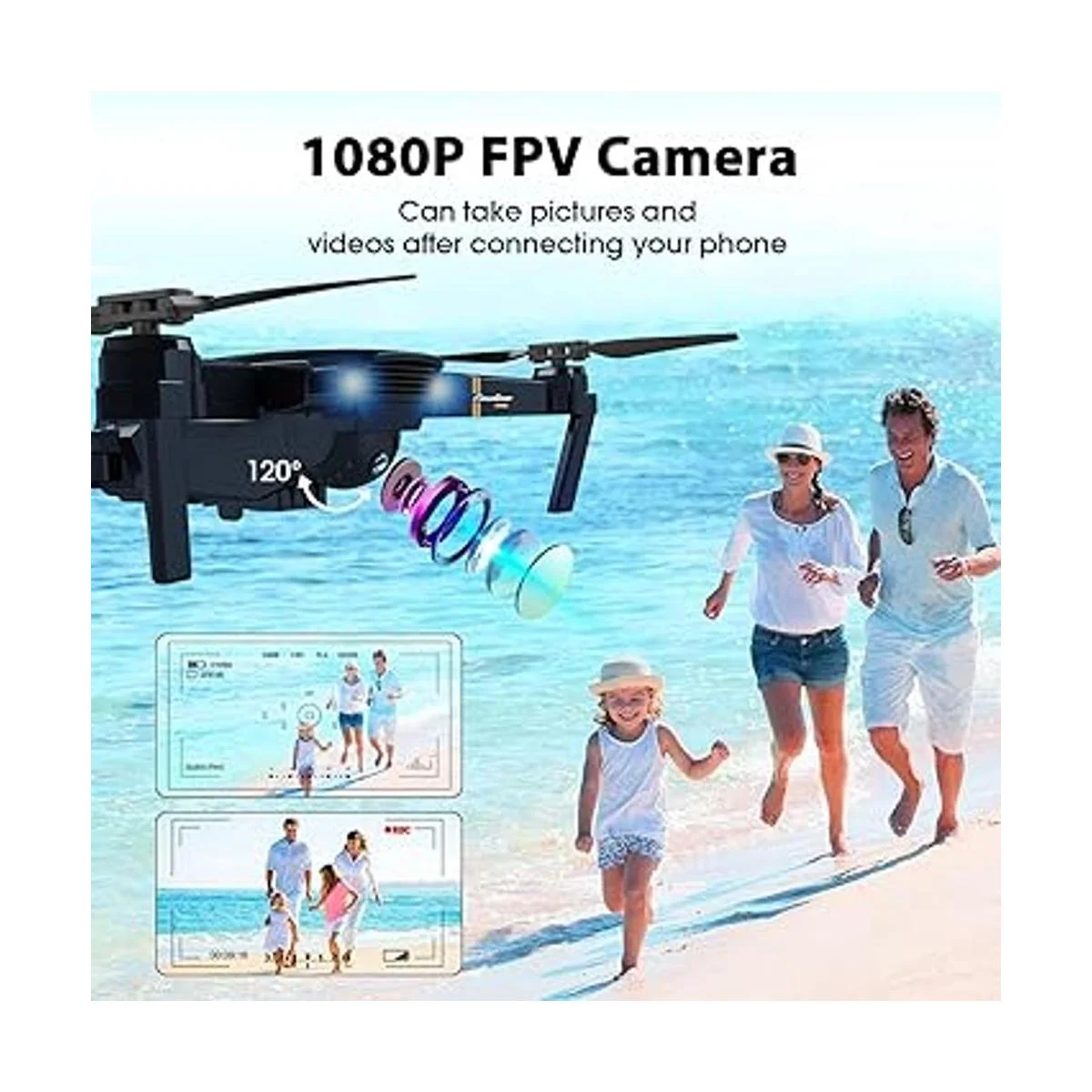 Drone con cámara HD 1080p: el drone E58 está equipado con una cámara de alta definición con ángulo ajustable. Con el ajuste de gran angular de 120, captura una grabación en HD y guárdala directamente, comparte la increíble vista en las redes sociales con un solo clic.