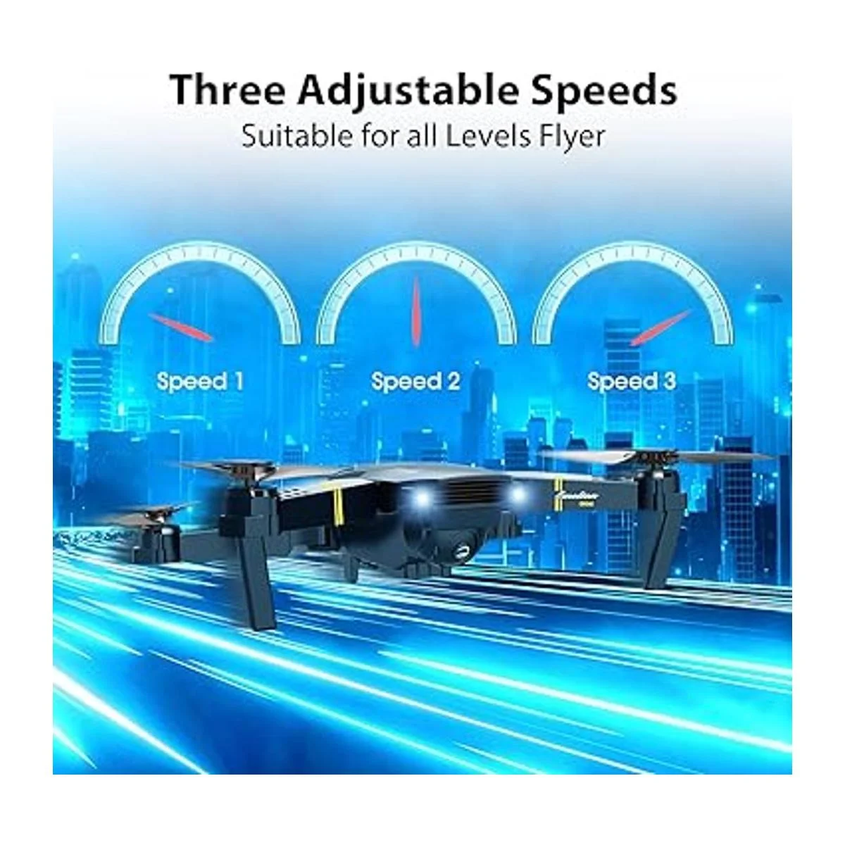 Drone multifunción: el drone viene con una tecla de inicio/aterrizaje, retención de altitud, modo sin cabeza, funciones de ajuste de velocidad, se adapta a todos los niveles de experiencia, incluso para niños y principiantes. A través de la aplicación se pueden activar el control de gestos, vuelo de trayectoria y control de sensor de gravedad, lo que te permite capturar selfies fácilmente con el control por gestos.
