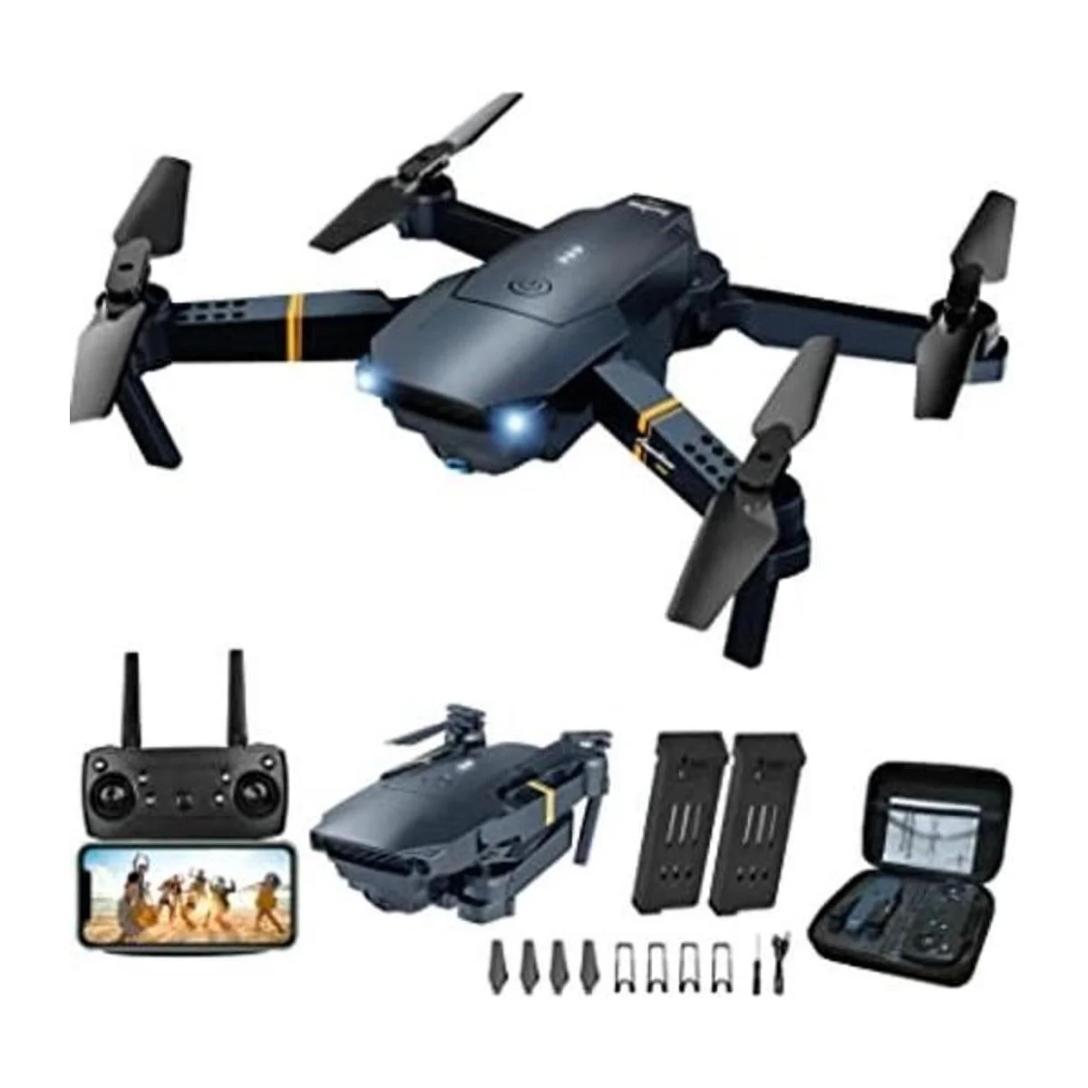 Drone con cámara para adultos, cuadricóptero RC plegable para niños, drone de video 1080P HD FPV para principiantes, 2 baterías, estuche de transporte, una tecla de inicio, retención de altitud, modo sin cabeza, función de puntos de referencia, vuelos en 3D