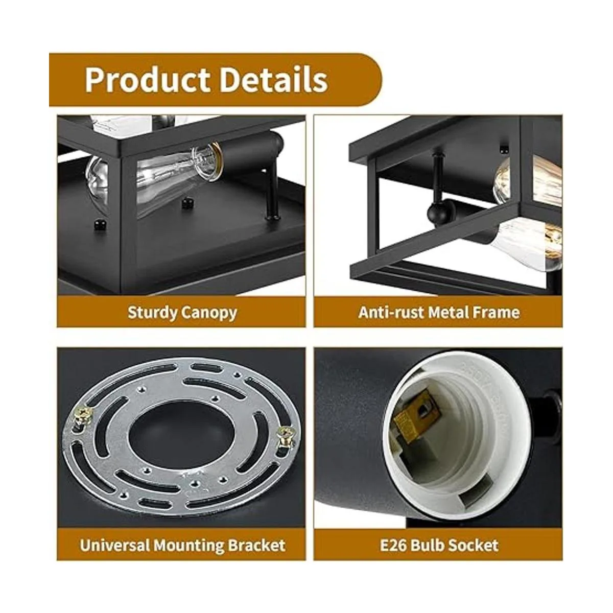 Drosbey Lámpara de techo empotrada de 2 luces, lámparas de granja, luz de techo industrial vintage para cocina, dormitorio, pasillo, lavandería