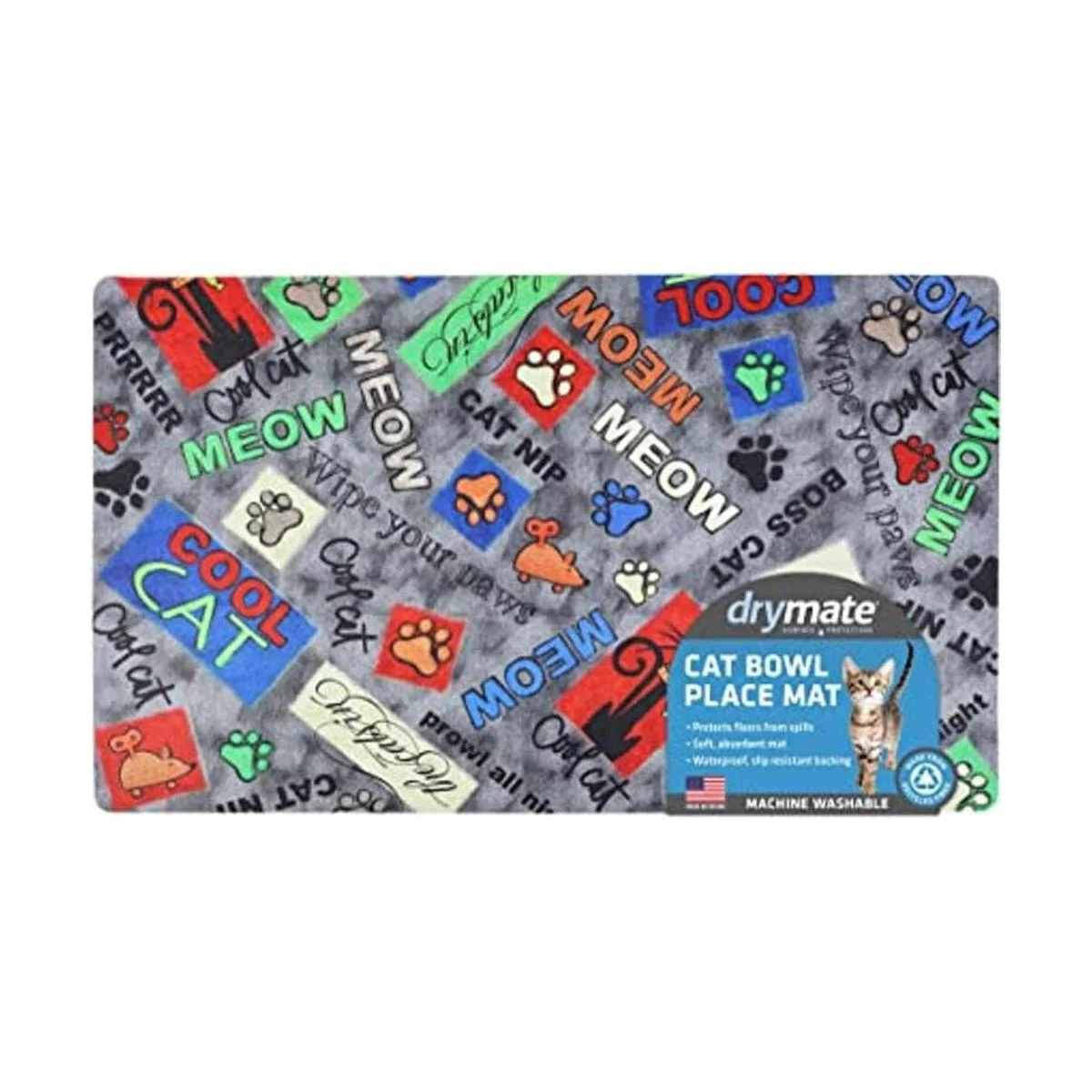 Drymate Mantel individual para gatos, tapete de alimentación para mascotas, tela absorbente, parte trasera impermeable, antideslizante, lavable a máquinaduradero fabricado en Estados Unidos