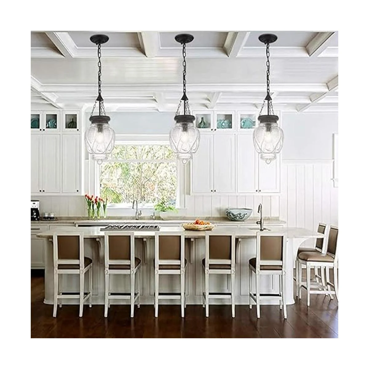 DSMJFU Lámpara colgante de techo de cristal negro para isla de cocina, decoración vintage para comedor, entrada, baño, fregadero, rincón de desayuno