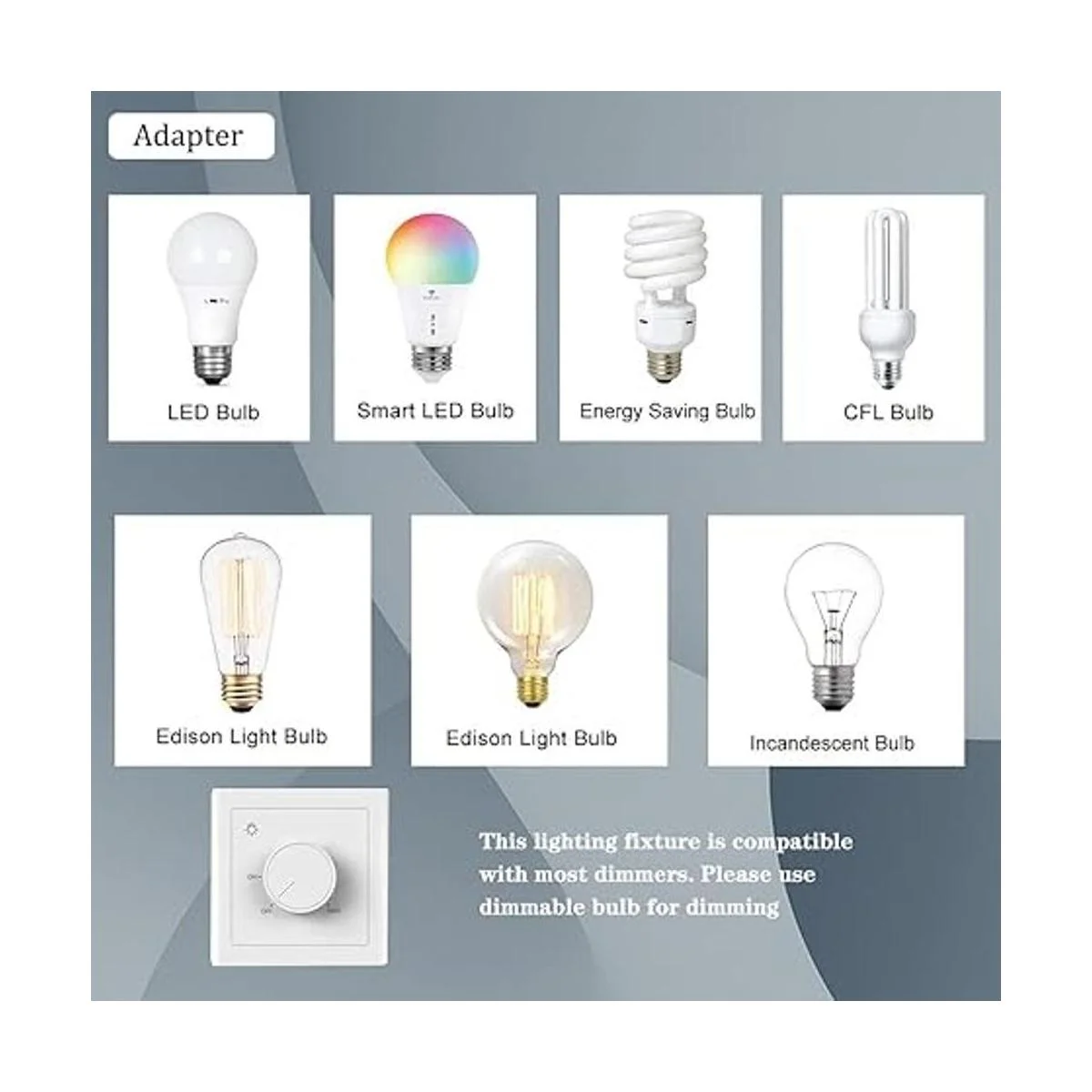 Dimensiones : luz colgante de granja: 7 7/8 pulgadas de profundidad x 57 1/2 pulgadas de alto, pantalla: 7 7/8 pulgadas de profundidad x 10 9/16 pulgadas de alto, cadena de colgar de 37 3/8 pulgadas ajustable. Altura ajustable total: 21 5/8 57 1/2; E26x1 no incluido, totalmente regulable cuando se utiliza una bombilla regulable y un interruptor de atenuación compatible. Utiliza bombillas de base media incluyendo bombillas LED, CFL y Edison, compatibles con la mayoría de bombillas inteligentes;