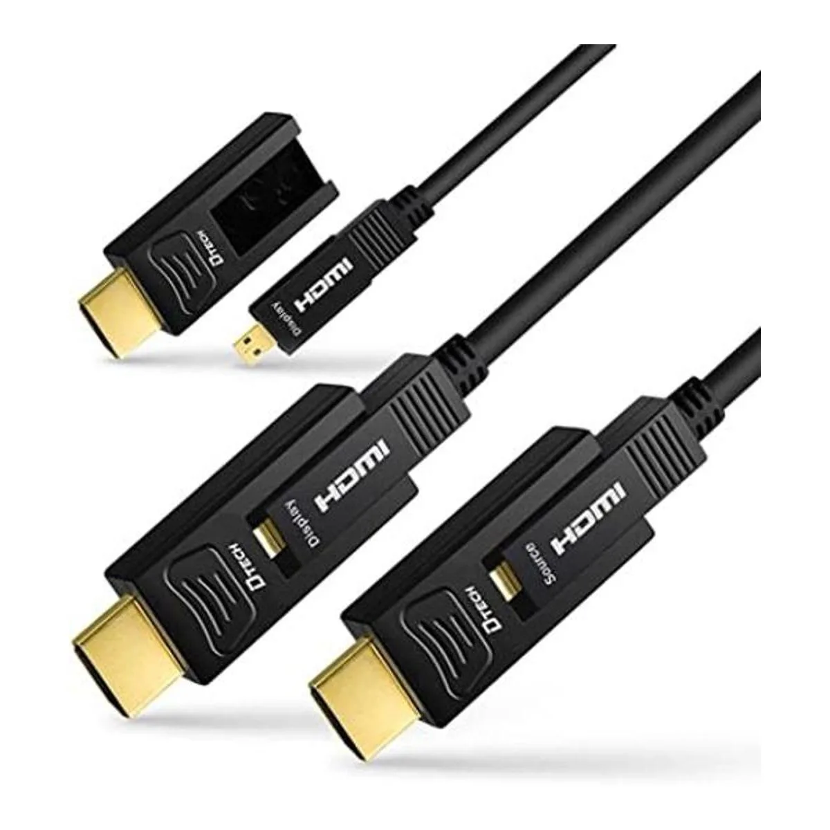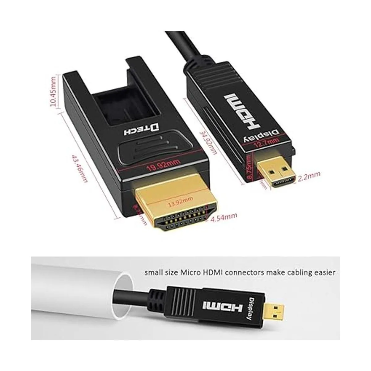 DTECH Cable HDMI de fibra óptica de 100 pies 4K 60Hz 444 Chroma Subsampling 18Gbps de alta velocidad Ultra HD con doble micro HDMI y conector HDMI estándar