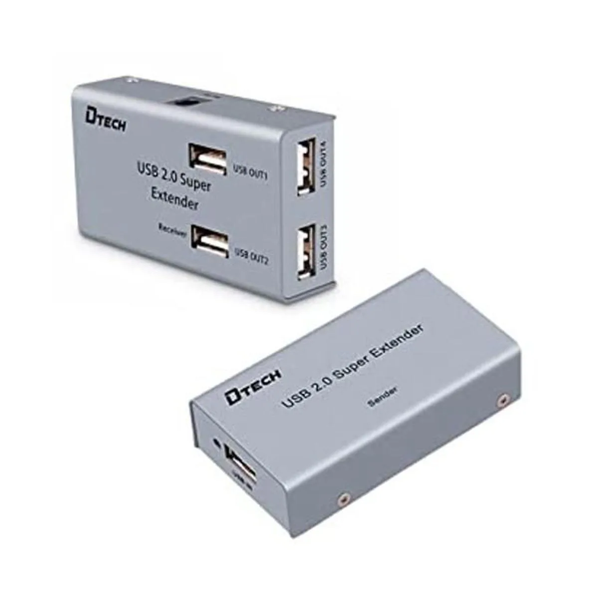 DTECH Extensor de señal USB múltiple a través de Ethernet Cat5 Cat6 cable de hasta 164 pies de extensión con 4 expansión USB A 2.0 puerto puerto adaptador de fuente de alimentación para ordenador Webcam cámara de disco duro teclado ratón