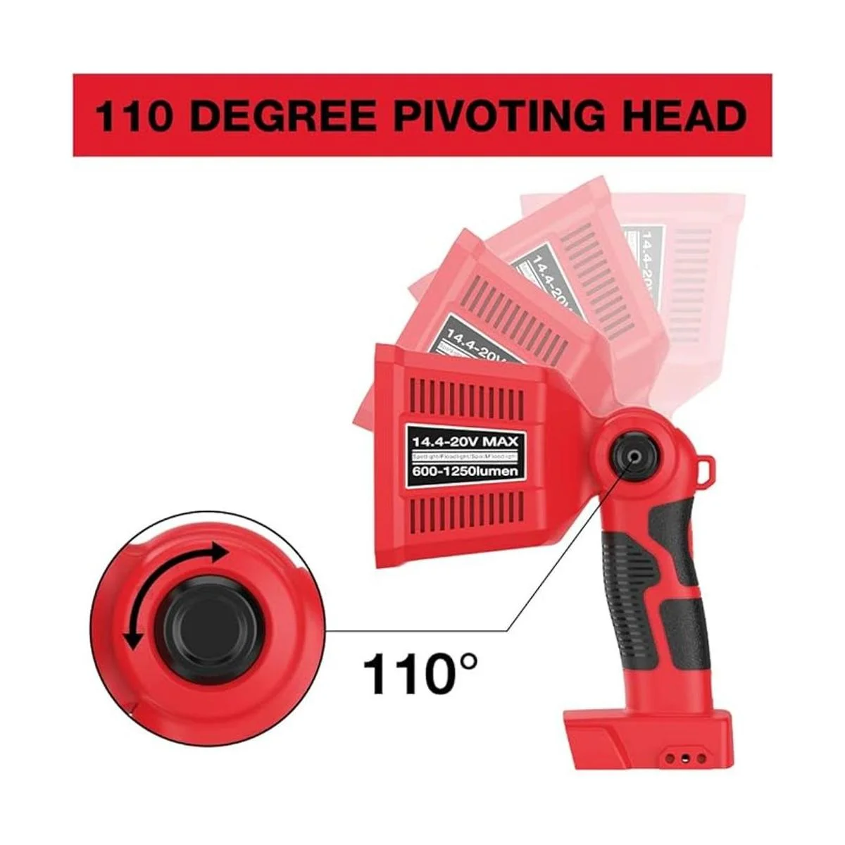 DTEZTECH Luz Milwaukee de 18 W alimentada por Milwaukee M18 batería de iones de litio de 18 V, reflector de linterna de 1250 lm con puerto USB, herramienta de luz de trabajo con cabezal giratorio de 110 grados LED de trabajo para Milwaukee