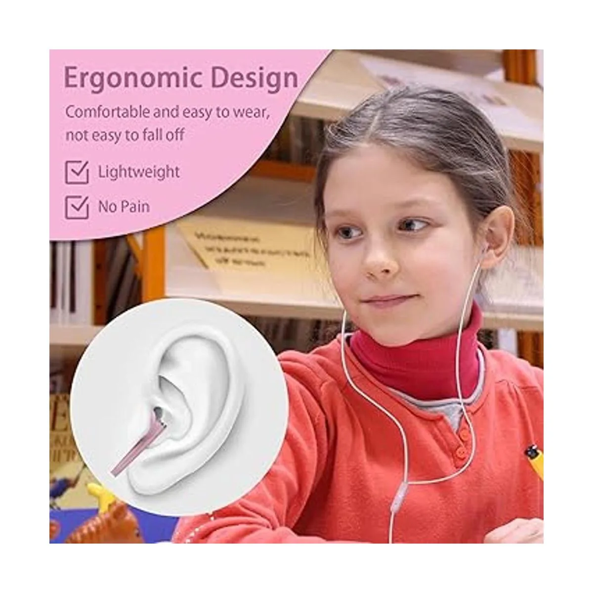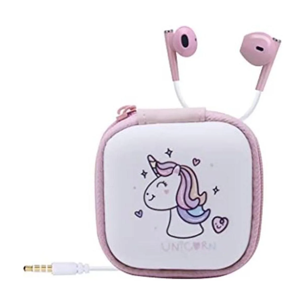 DTMNEP Auriculares para niños para la vuelta a la escuela con bonita funda de almacenamiento de auriculares, auriculares de unicornio para niños, auriculares intrauditivos de electrónica con cable de 0.138 in con micrófono, regalos encantadores para niñas y niños rosa