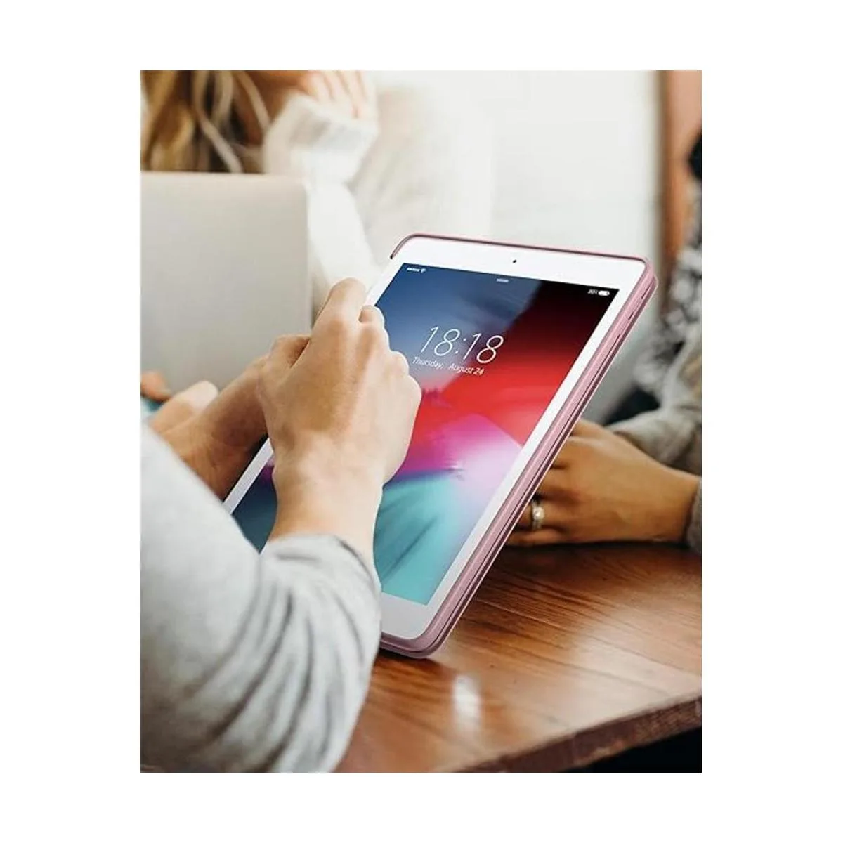 Cubierta frontal de tres pliegues con doble posición de pie para Facetime, visualización de películas y escritura de teclado. La cubierta magnética inteligente soporta la función de apagado y encendido automático de respuesta rápida.
