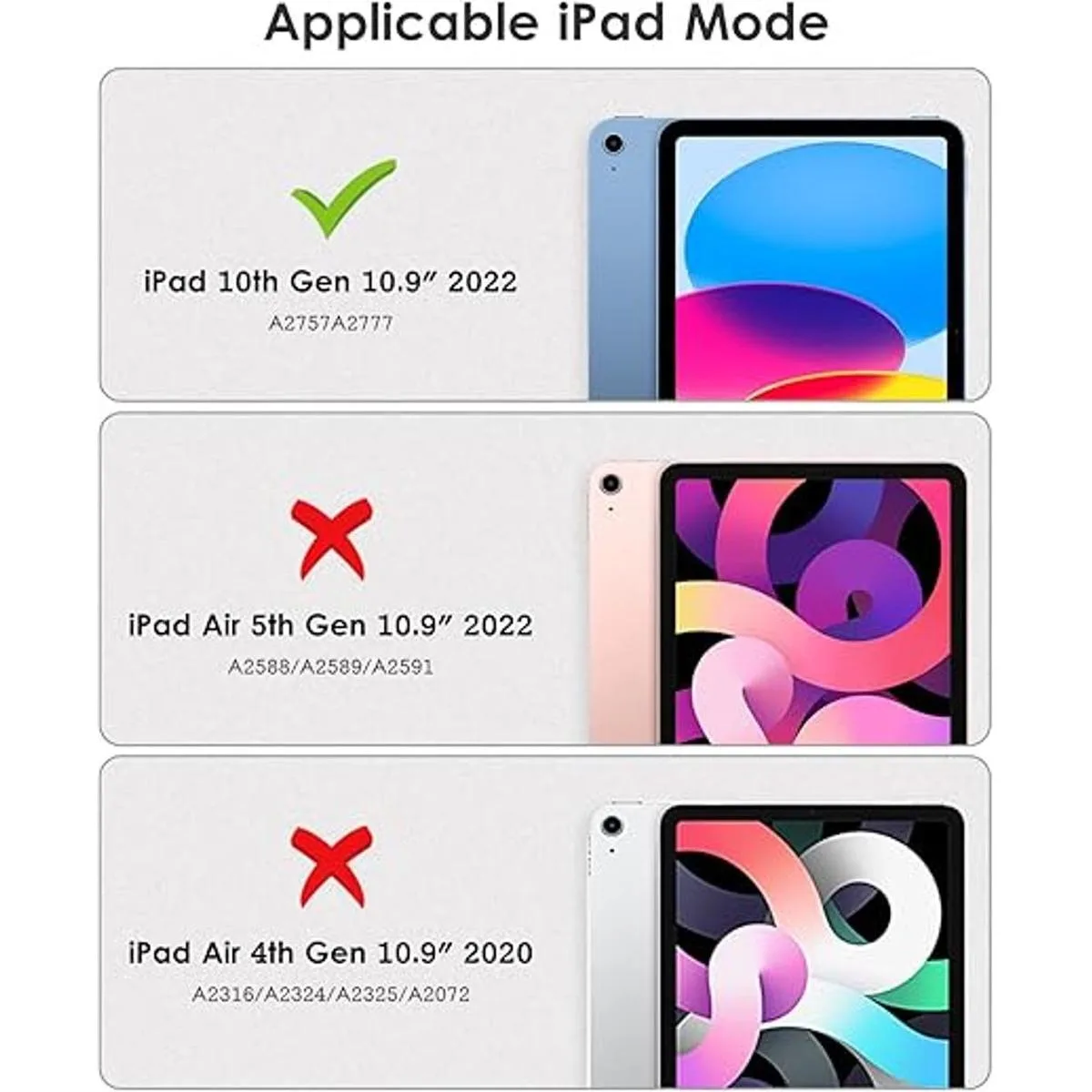 Modelo de compatibilidad Esta funda transparente es compatible con iPad de 10.9 pulgadas de 10. generación: A2757/A2777/A2696 lanzado en 2022, no compatible con ningún otro dispositivo iPad.