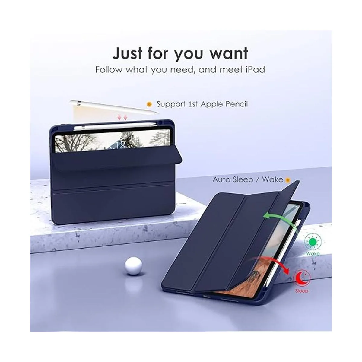 Múltiples funciones Esta funda para iPad tiene soporte para lápices para soportar Touch ID, protección de cámara, diseño de imanes integrados que soporta encendido y apagado automático, cubierta frontal de tres pliegues que te da 2 ángulos de visión diferentes.