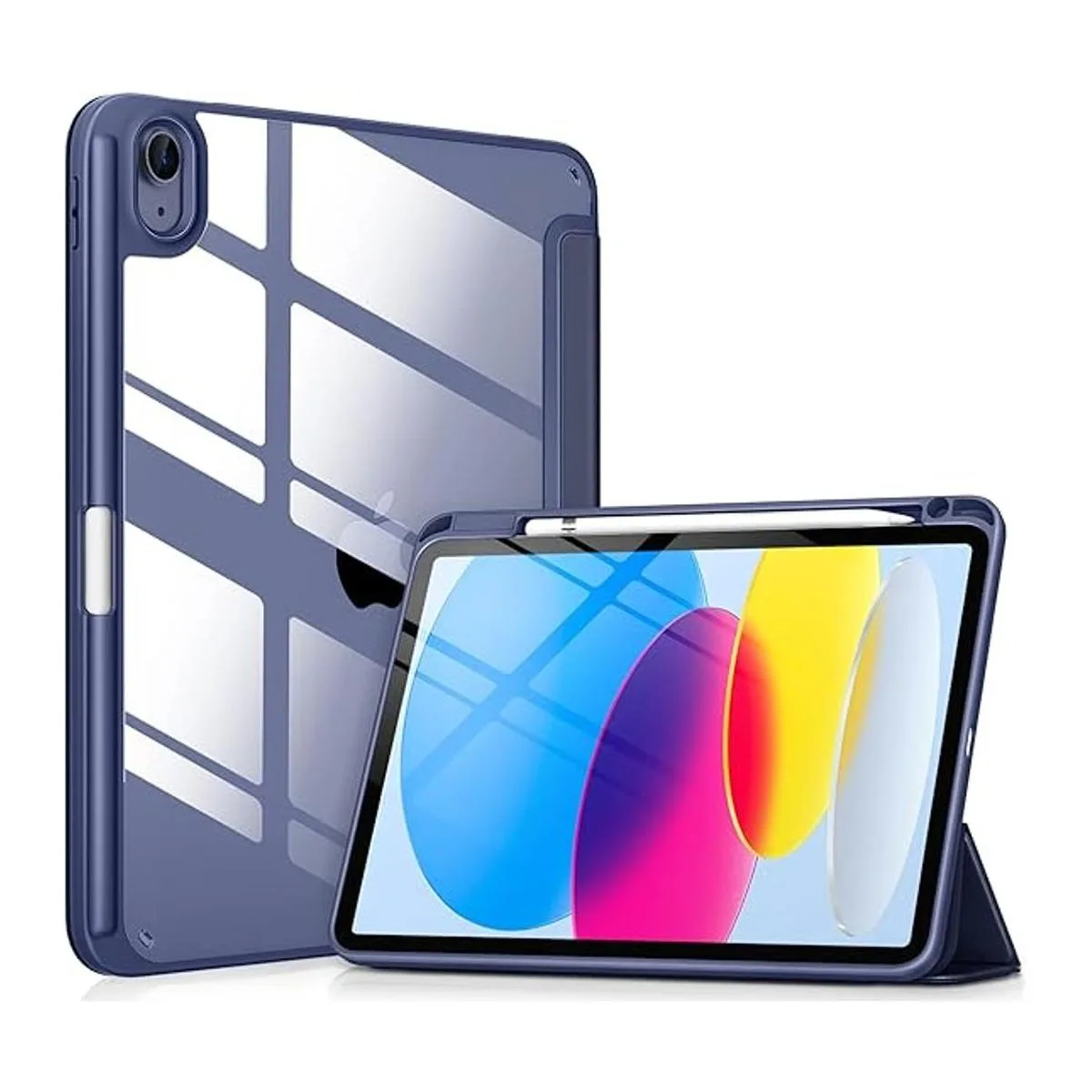 DTTOCASE Funda para iPad de 10 generación 2022, funda para iPad de 10.9 pulgadas con parte trasera transparente transparente y cubierta de marco de poliuretano termoplástico a prueba de golpes soporte para lápices integrado, compatible con encendidoencendido automático Azul medianoche