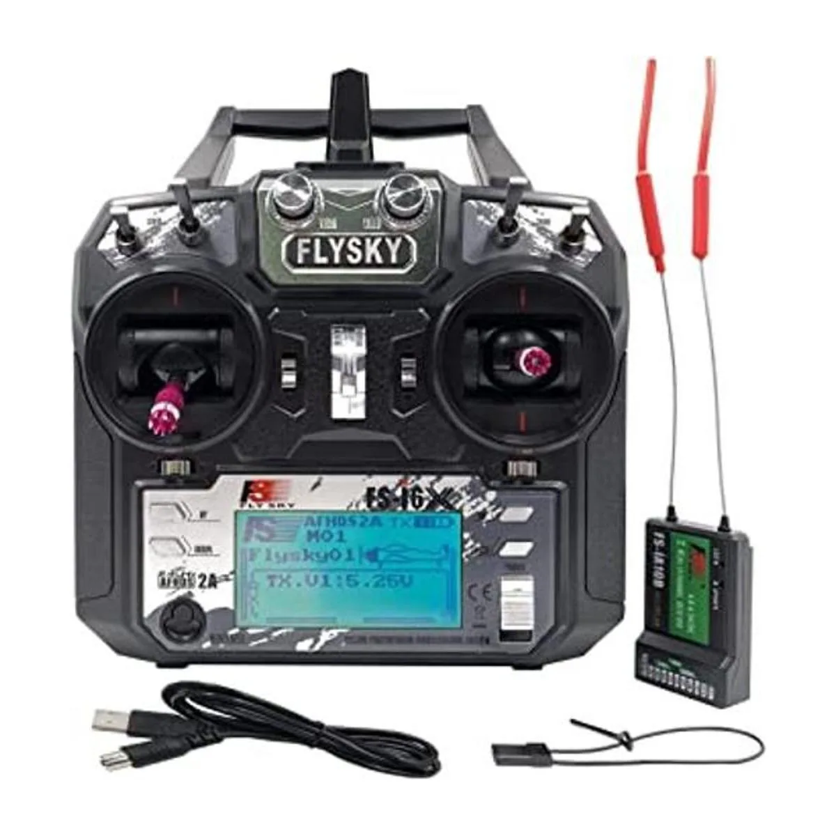 DTXMX Flysky FSi6X 2.4G 10CH Radio Transmisor y receptor iA10B Controlador RC para avión, helicóptero, FPV, dron RC Barco, negro